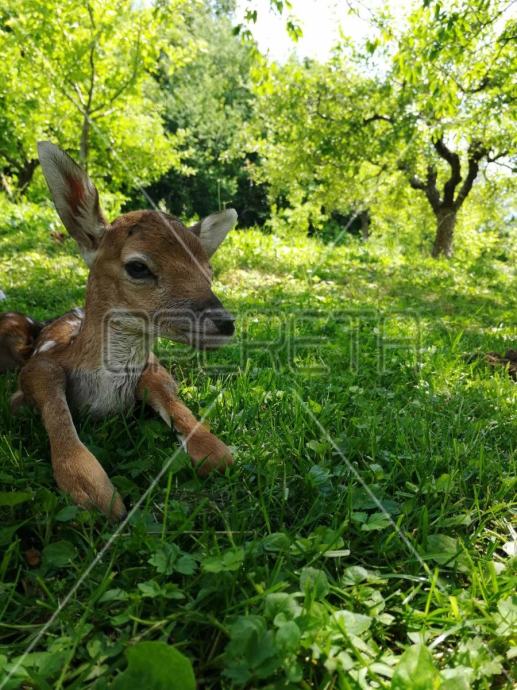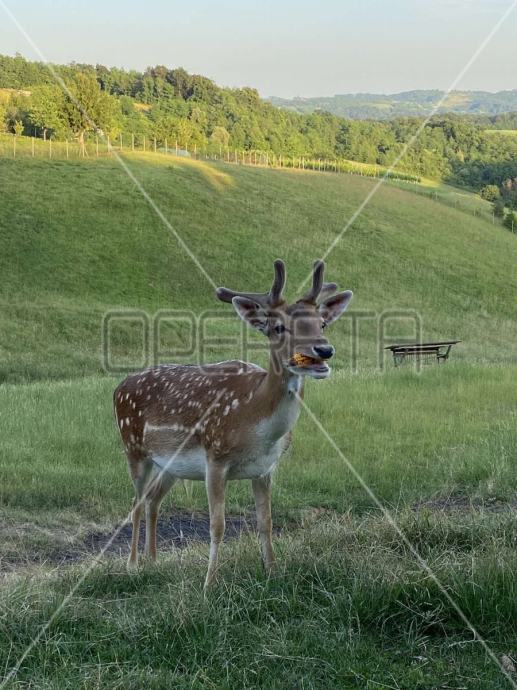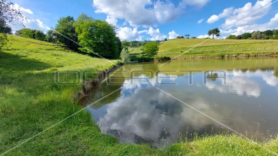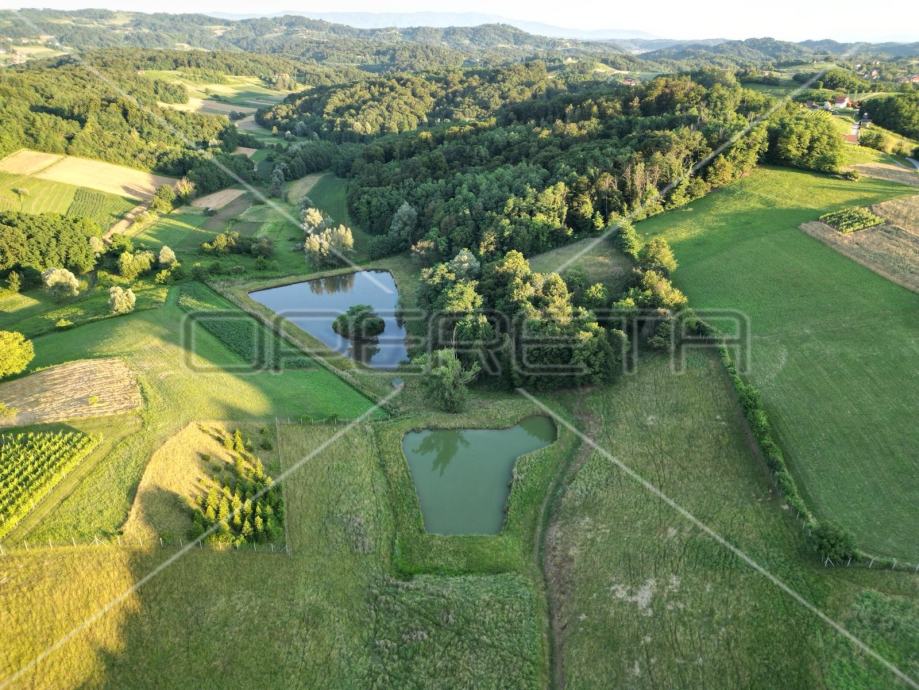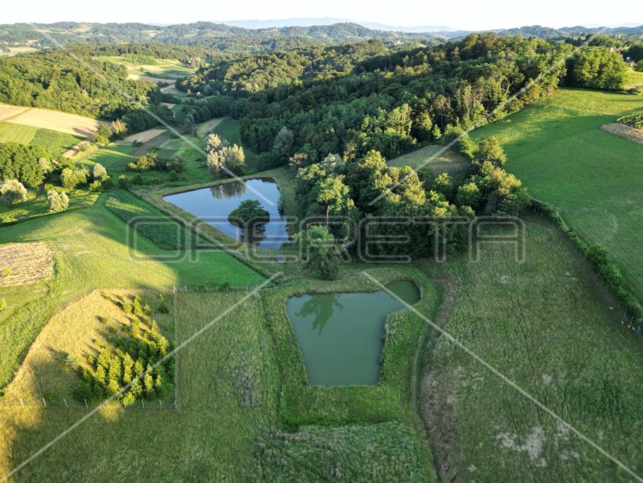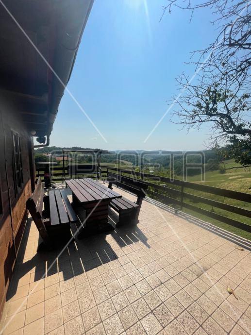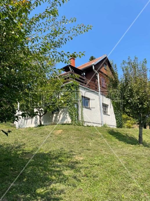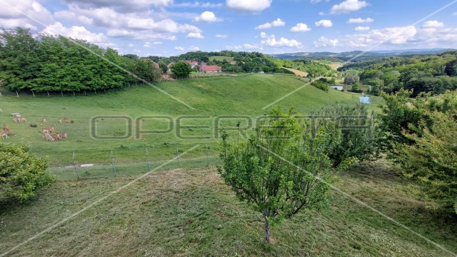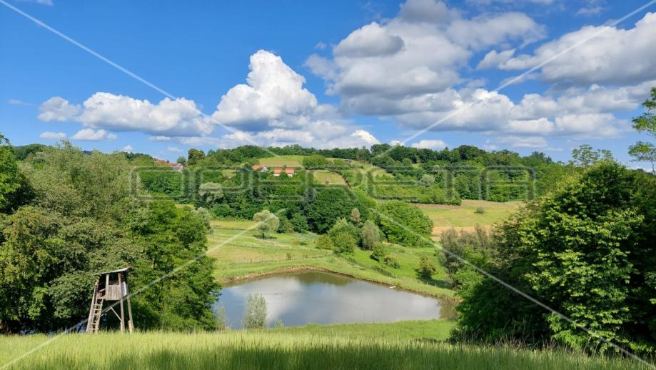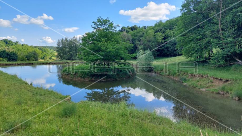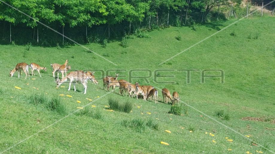 Dvoetažna kuća, tlocrtne površine 58m2, od čega je zatvorene površine 80m2, na parceli od 52700m2 s 2 jezera/ribnjaka, šumom i životinjama (oko 40 kom jelena lopatara i muflona). Kuća je djelomično renovirana. Parcela je u potpunosti ograđena. Životinje na parceli su samodostatne, tj. nije ih potrebno hraniti. Mirna i idilična mikrolokacija na 30ak min vožnje od Zagreba. Idealno kao vikend kuća za uživanje ili za turistički najam.