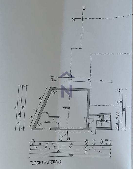 U prizemlju se nalazi još jedan jednosoban stan površine 40m2. Također, u prizemlju se nalaze i 2 ostave površina 9m2 i 12m2.