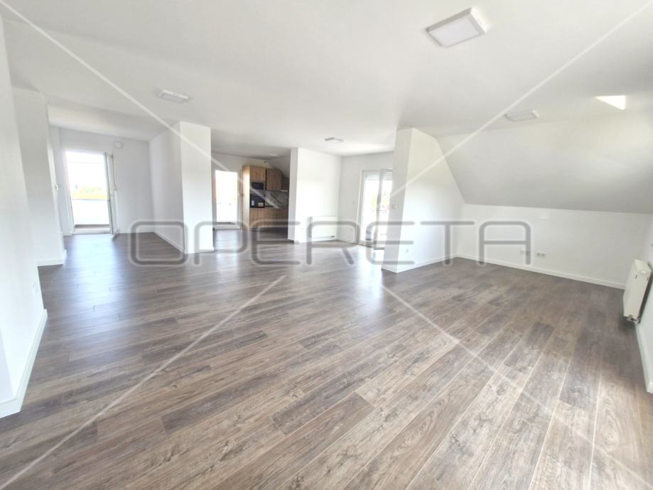PRVI KAT ima zatvorenih 120m2: stubište, otvoreni prostor dnevnog boravka, kuhinja i blagovaonica, dvije spavaće sobe. Također, ima dvije natkrivene terase, lođu i balkon. Kupaonice imaju podno grijanje, grijanje plinsko etažno i zasebno je izveden kamin na kruta goriva, termo fasada...