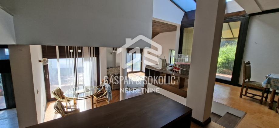 Kuća se sastoji od prostranog dnevnog boravka povezanog s blagovaonicom, dvije kuhinje, tri udobne spavaće sobe – svaka s izlazom na vlastiti balkon, jedne kupaonice, te dva odvojena WC-a. Dodatno, kuća raspolaže s više terasa i čak tri balkona, pružajući obilje prirodnog svjetla i otvorenih pogleda.