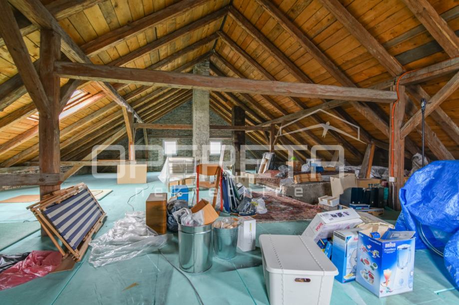 Uz stambeni dio u prizemlju, kuća posjeduje roh-bau potkrovlje od 120 m2, spremno za uređenje u dodatni stambeni ili radni prostor, te podrum od 50 m2. Na parceli postoji značajan potencijal za investiciju jer je moguća gradnja objekta cca 490 m2 BRP-a.