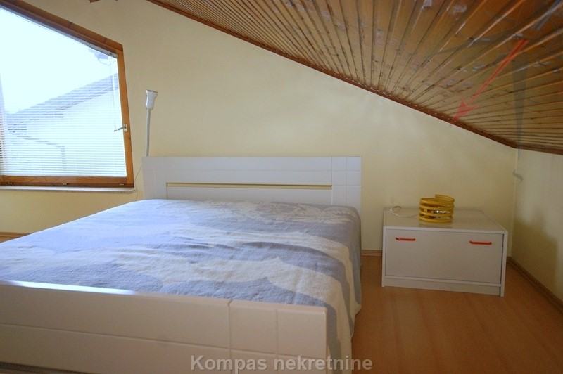 DRUGI KAT: hodnik, kupaonica, dnevni boravak s izlazom na balkon ( 5 m² ), spavaća soba, radna soba koja može biti i kuhinja jer ima sve instalacije, uređeni tavanski prostor koji služi kao spremište.