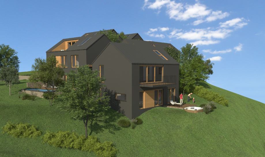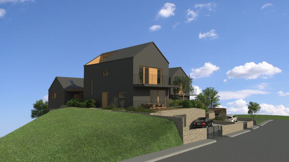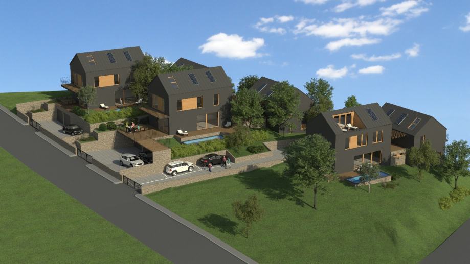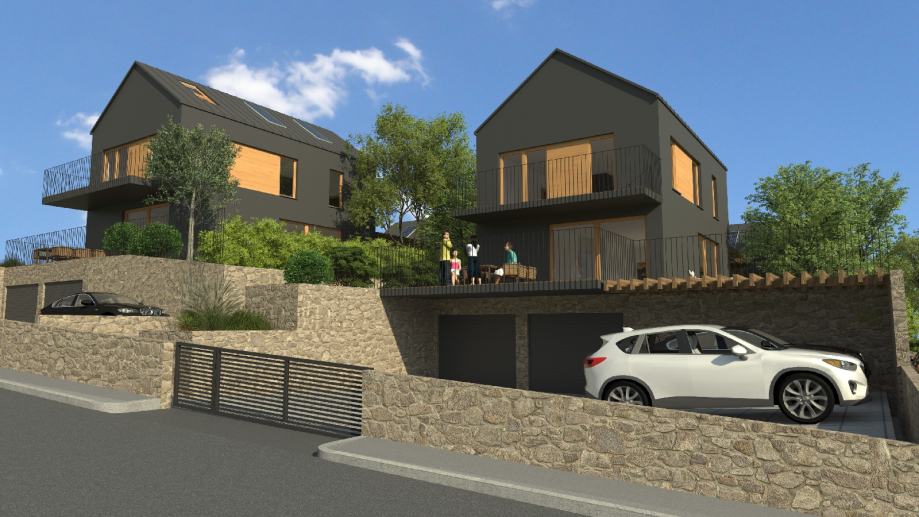 Projektirano protupotresno, energetski razred A+. Kuća se sastoje od podruma, prizemlja, kata, galerije i potkrovlja, ukupne površine 220 m2. Kuća ima svoj vrt, bazen te vanjsku kuhinju i terase. U podrumu su predviđena spremišta, garažna mjesta s direktnim pristupom kući.