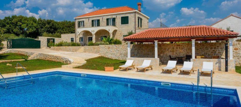 Beautiful luxury villa for sale in Močići. Stone villa with large terraces on all sides, large fenced yard with pool and parking. In addition to the villa there is a guest house on the estate as well, also completely luxuriously renovated and decorated.