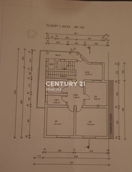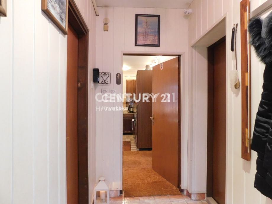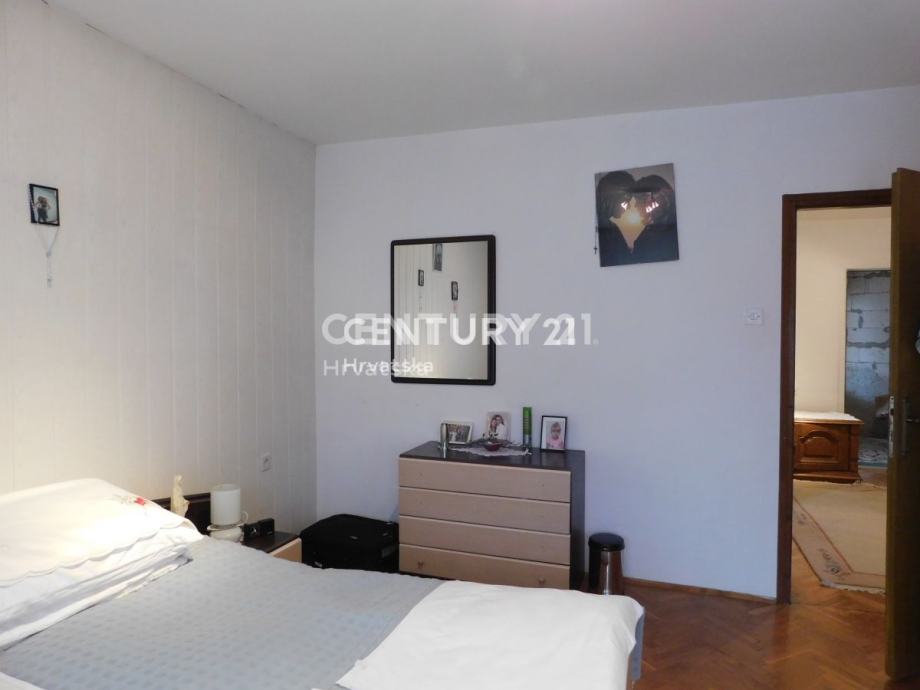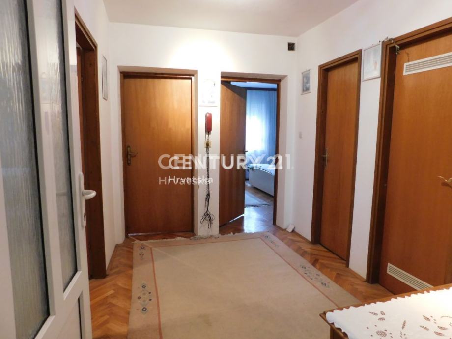 Kat:ulazni hol, predvorje, 3 spavaće sobe, ostava i kupaonica.