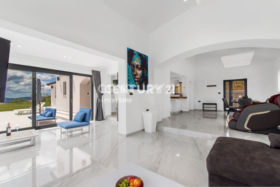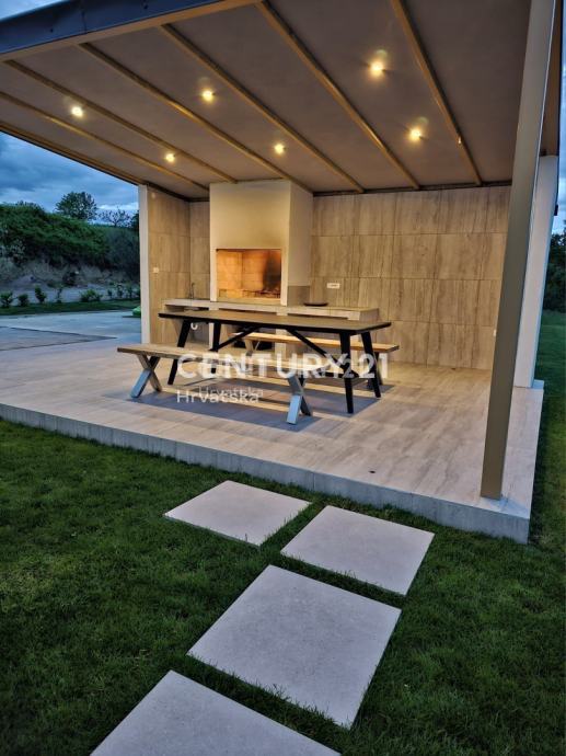 Kuća se sastoji od kuhinje s blagovaonicom i dnevnim boravkom otvorenog tipa s izlazom na terasu i bazen površine 55 m2 uz koji se nalazi i jacuzzi.