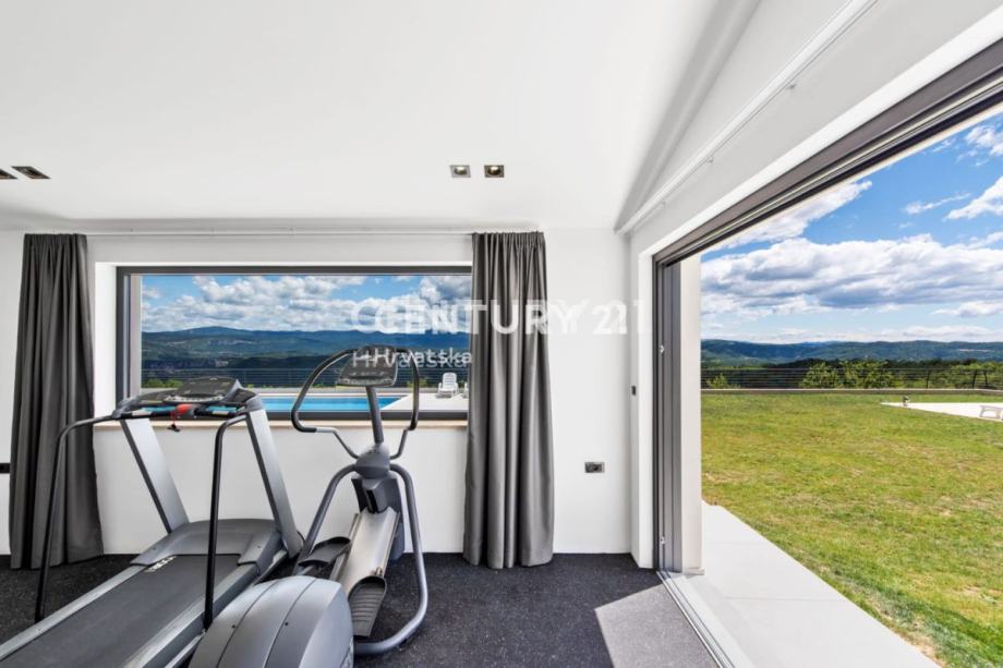 Uz dnevne prostorije u prizemlju se nalazi kupaonica i teretana iz koje se pruža očaravajući pogled.
