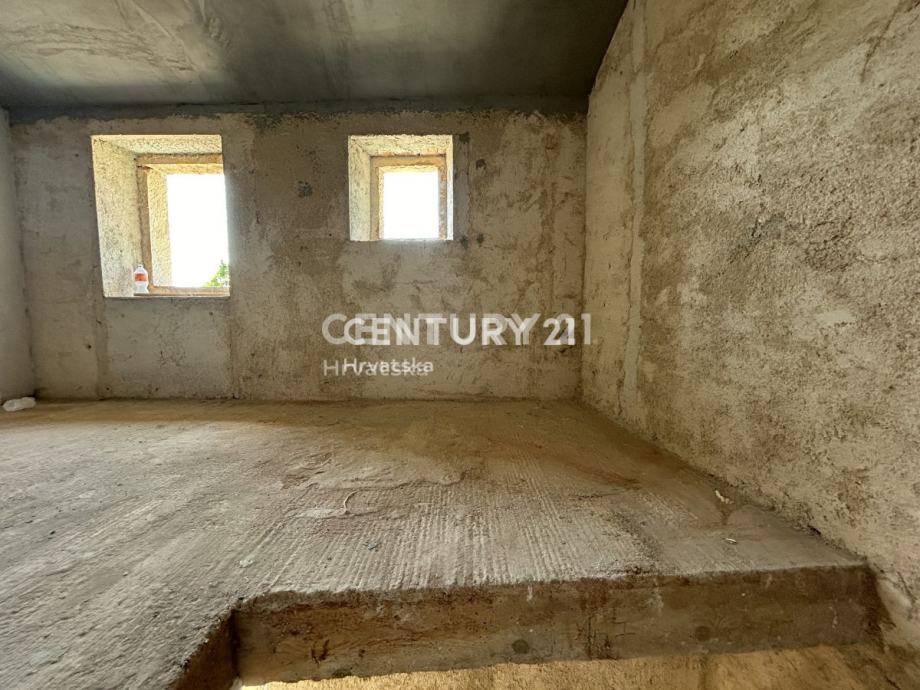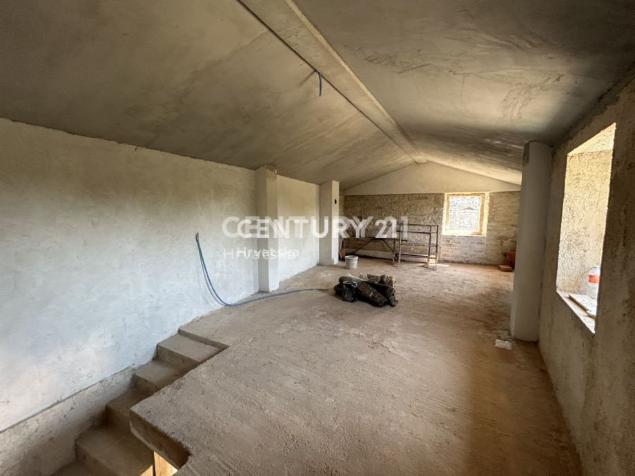 Unutarnjim stepeništem penjemo se na prvi kat na kojem novi vlasnik može napraviti raspored po želji a predviđene su dvije spavaće sobe i kupaonica. Kuća ima novu temeljnu ploču sa hidroizolacijom, unutarnje stepenište, megukatno armirano-betonsku ploču, novi krov sa toplinskom izolacijom, i kompletno su očiščeni zidovi izvana i izunutra te su fugirani fug masom bijele boje koja je vodonepropusna. Dvorište je površine 206 m2.