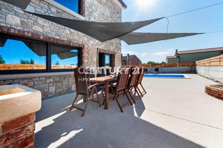 Kuća se nalazi na okućnici od 600m2, u kojoj ima i više parking mjesta, a po projektu je planirana i ljetna kuhinja, kao i slani bazen bez klora s hidromasažnom klupom te slapom.