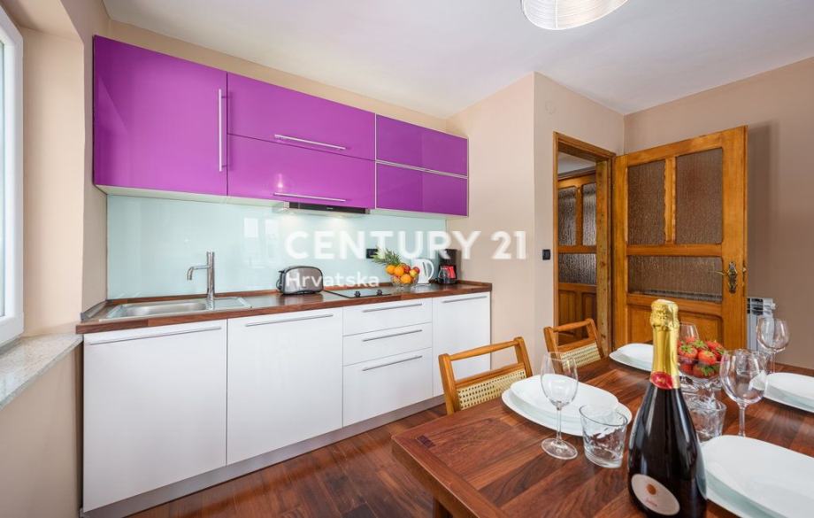 Dakle objekt ima 2 kuhinje, 4 spavaće sobe i dvije kupaonice ukupne površine 158 m2. Sav je namještaj rađen po mjeri i vrhunske kvalitete.