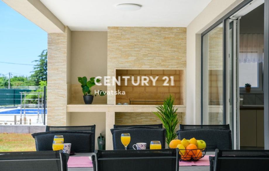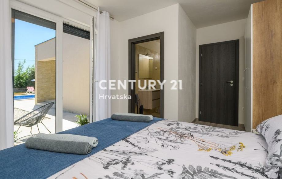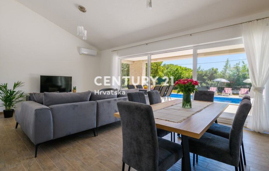 Sastoji se od ulaznog hodnika, spremišta, dnevnog boravka, kuhinje s blagovaonicom, 3 spavaće sobe i 3 kupaonice. Dnevni prostor otvorenog je tipa s puno dnevne svijetlosti. Iz kuhinje se izlazi na natkrivenu terasu i bazen sa sunčalištem.