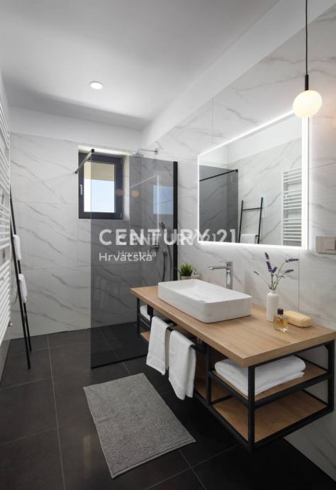 Na mirnoj lokaciji, svega nekoliko minuta vožnje do prekrasnih plaža i kristalno čistog mora, prodajemo novu katnicu površine 200 m2 s otvorenim pogledom na more.