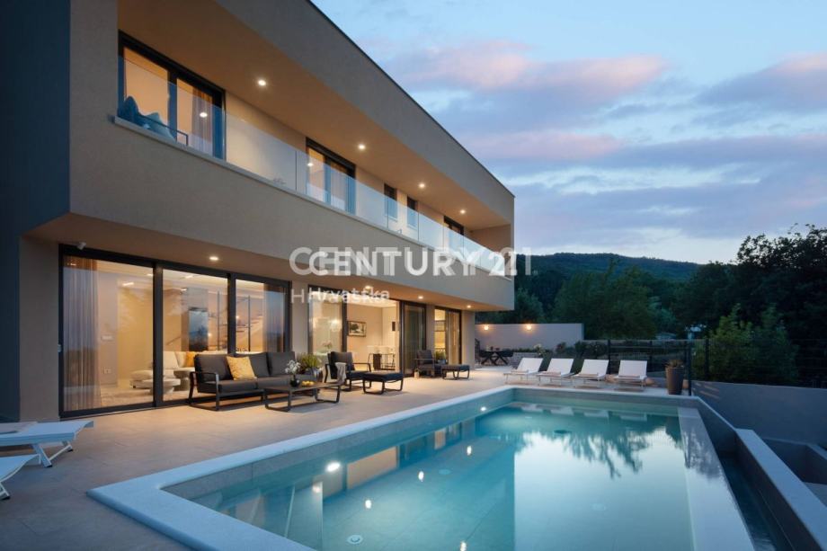 LABIN, LUSKUZNA KUĆA S PRELIVNIM BAZENOM I OTVORENIM POGLEDOM NA MORE
