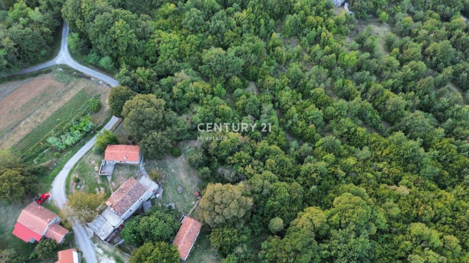 Na mirnoj lokaciji, u malome selu nedaleko Labina, prodajemo veliko imanje površine 23900 m2 na kojem se nalaze 3 samostojeće kamene kuće (cca 90 m2, 80 m2 i 60 m2).