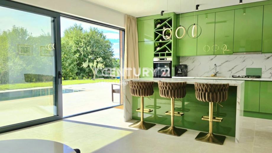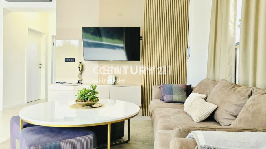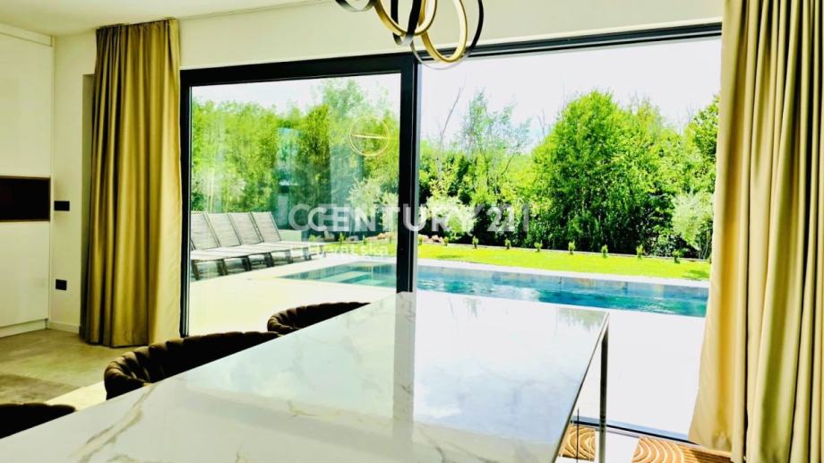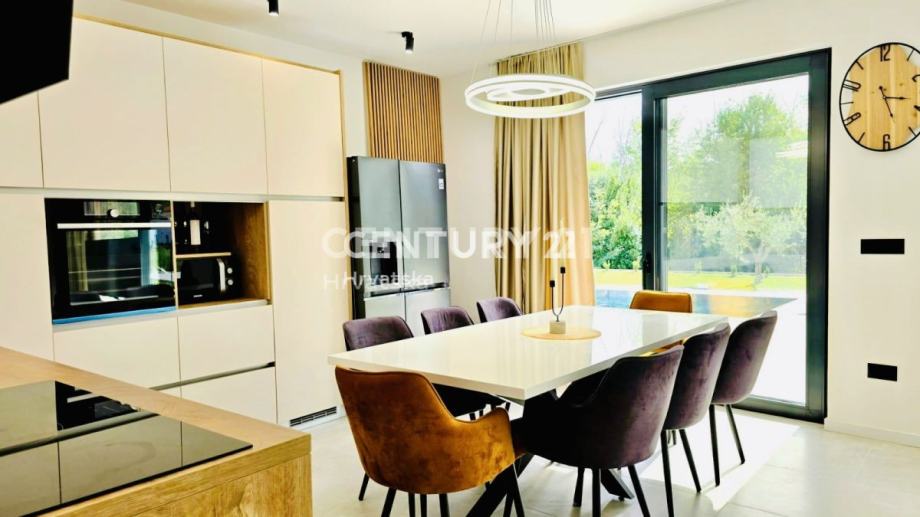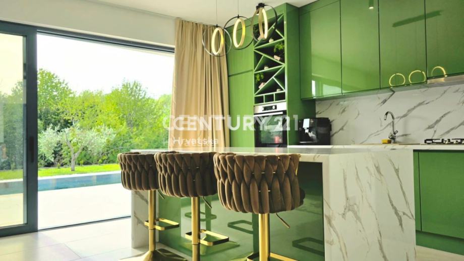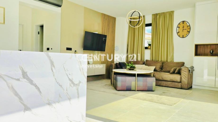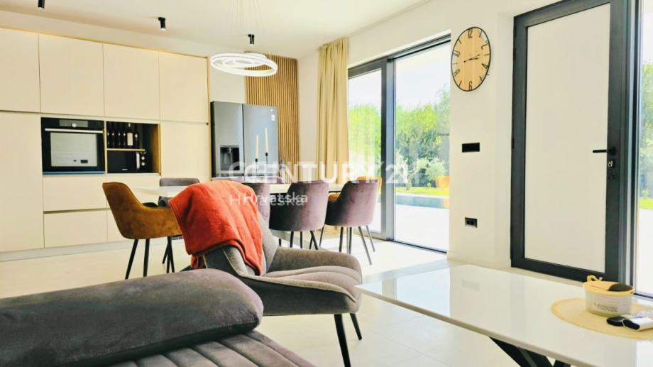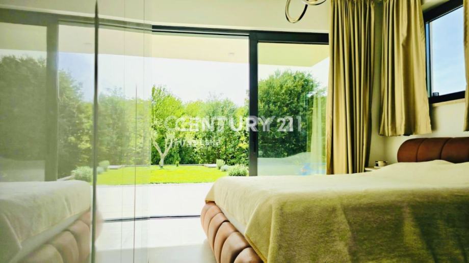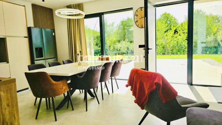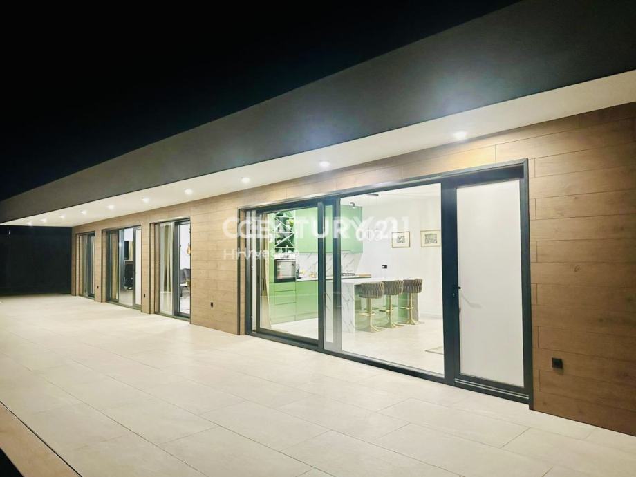 Kuća je potpuno opremljena i namještena, građena vrhunskim materijalima, termo fasada debljine 12 cm, vrhunska keramika i sanitarije, aluminijska stolarija sa automatskim roletama i komarnicima.