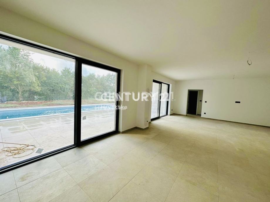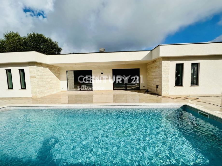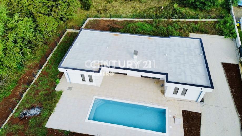 U okolici šarmantnog Labina te na udaljenosti od 3 kilometra od mora te prelijepih plaža i uvala, na okućnici površine 1.368 m2, smjestila se ova novosagrađena luksuzna prostrana prizemna vila s bazenom, ukupne je netto korisne površine 140 m2.