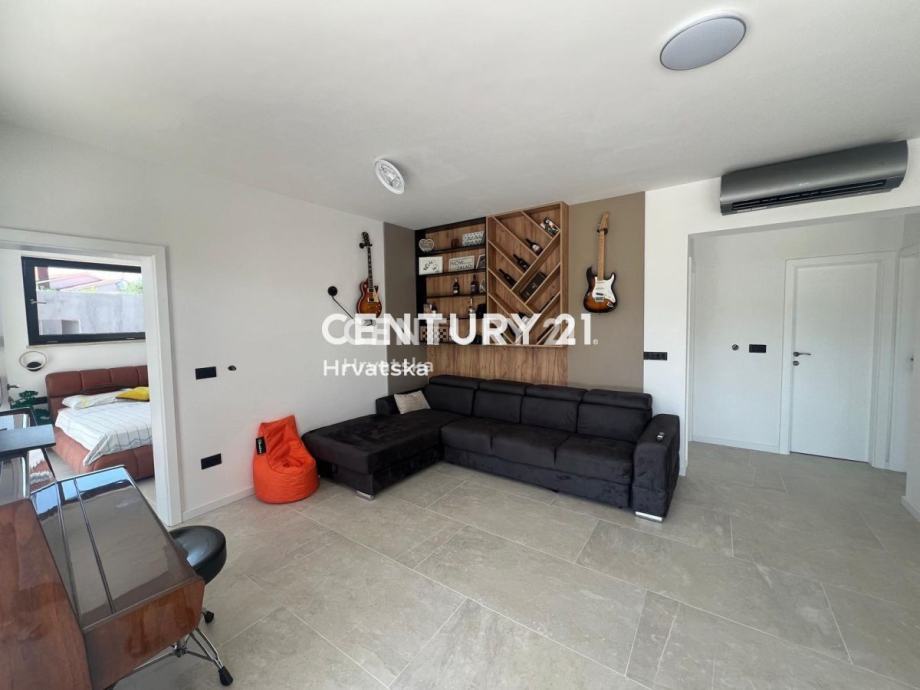 Kuća je potpuno opremljena i namještena, građena vrhunskim materijalima, termo fasada debljine 12 cm, vrhunska keramika i sanitarije, aluminijska stolarija sa automatskim roletama i komarnicima.