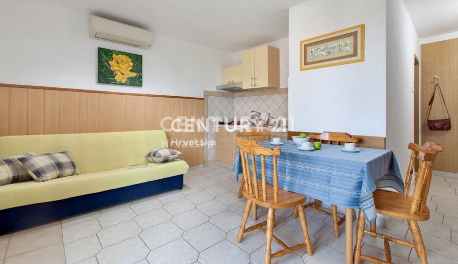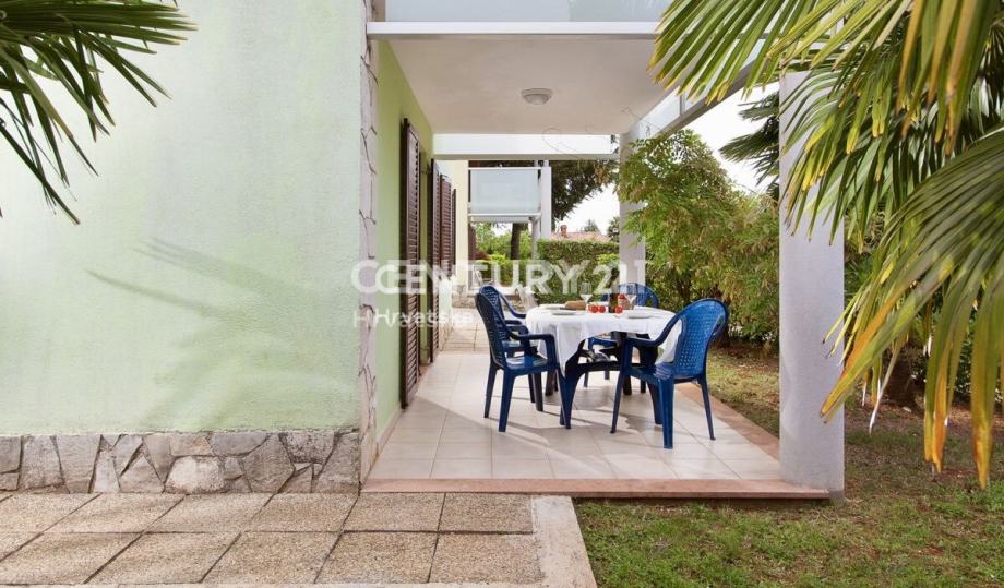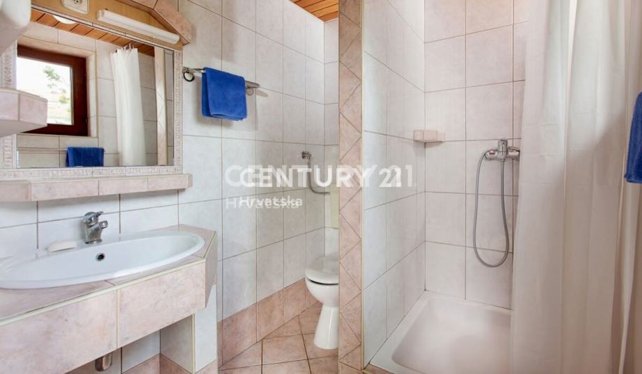 Kuća je podijeljena na dva zasebna stana/apartmana površine 55 m2 koji svaki ima zaseban ulaz.