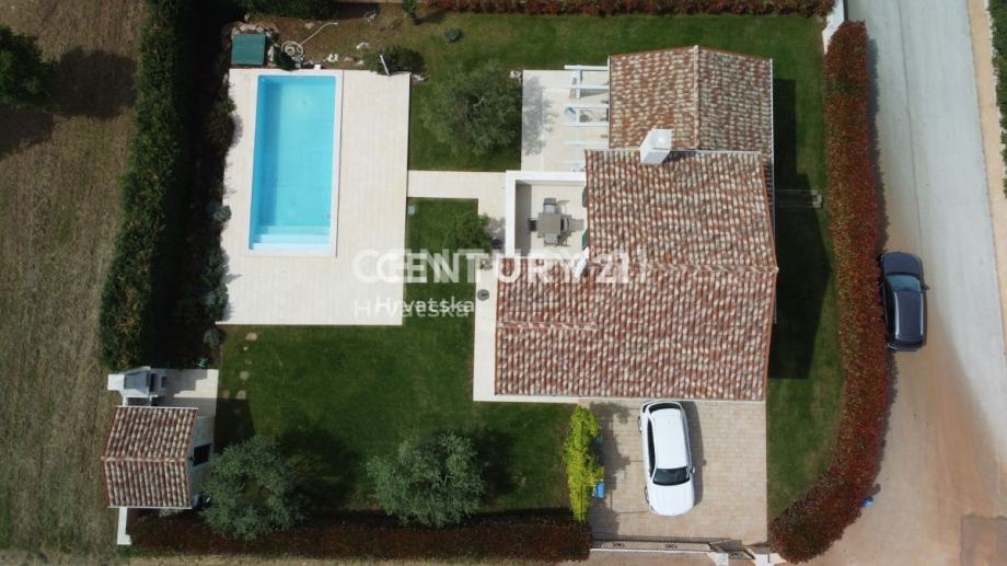Ova prekrasna kuća s bazenom i pogledom na vinograde idealan je dom za odmor ili stalno stanovanje. Smještena je u mirnom dijelu samo 14 km udaljenom od Poreča i Jadranskog mora, što pruža savršenu ravnotežu između privatnosti i blizine svim sadržajima.