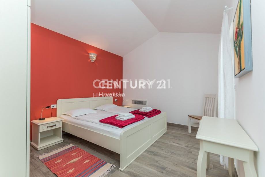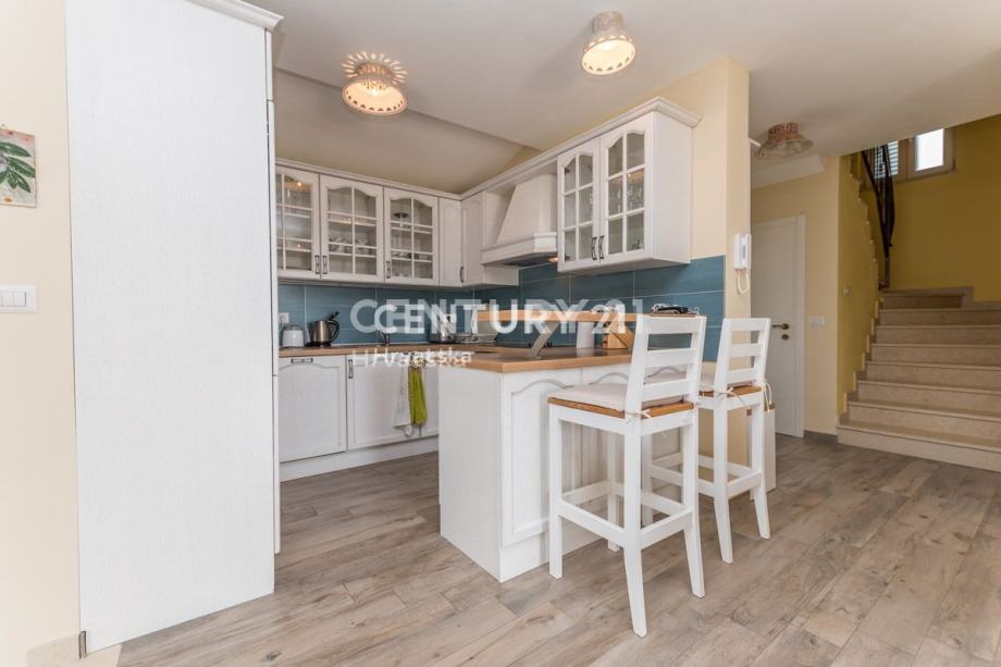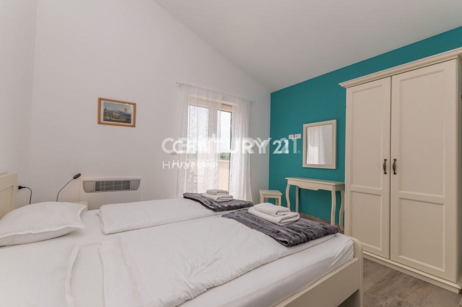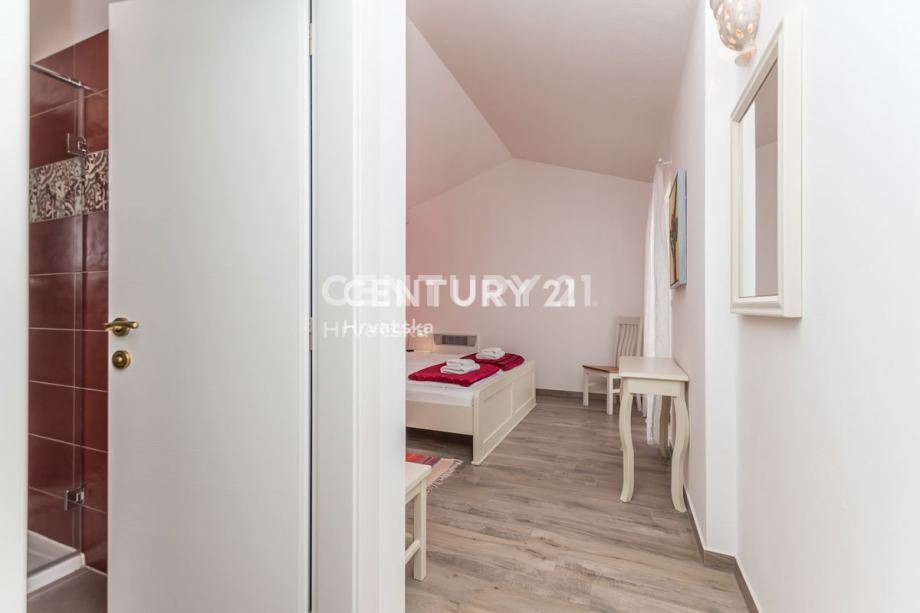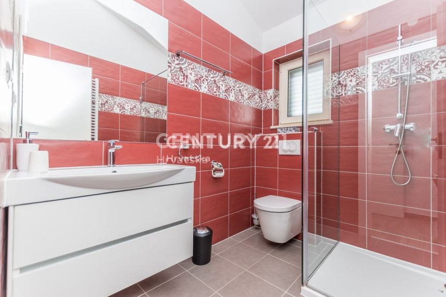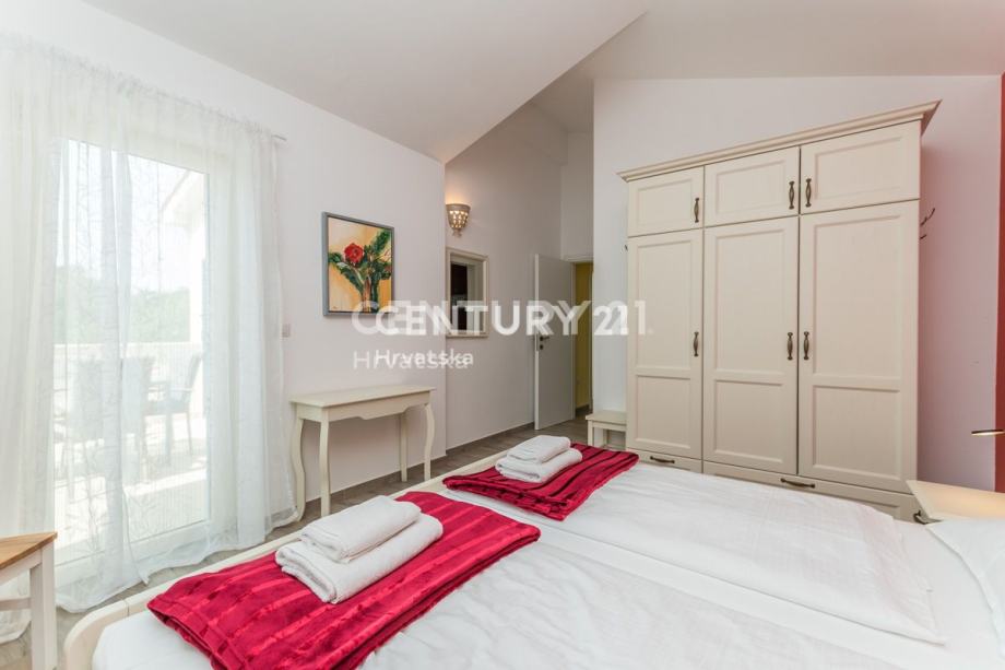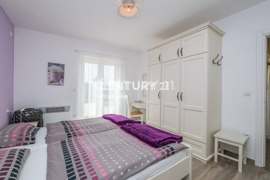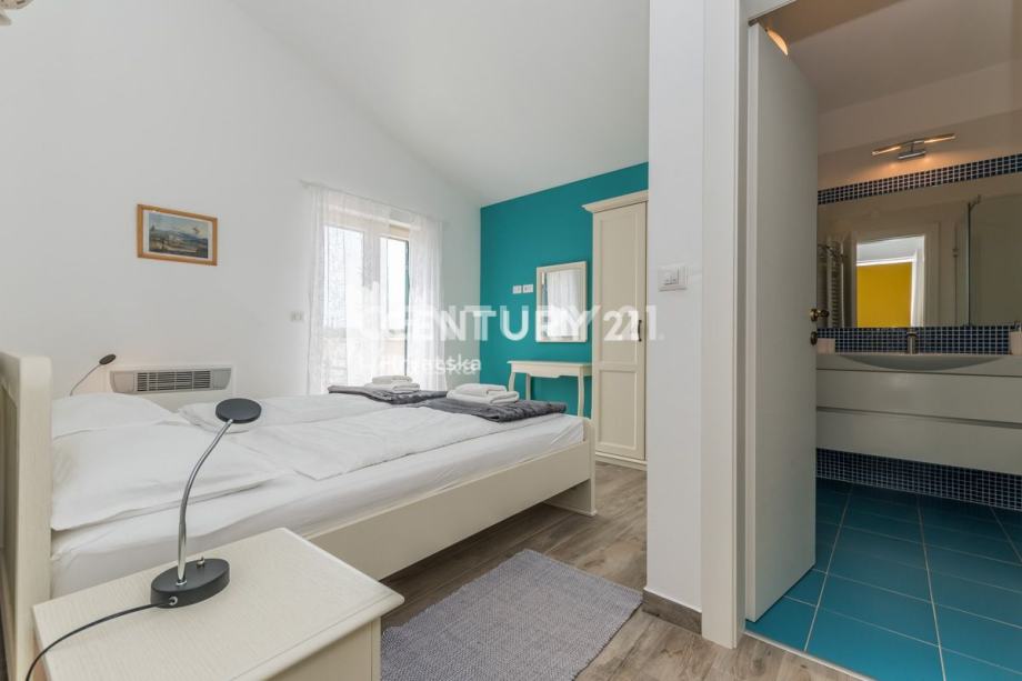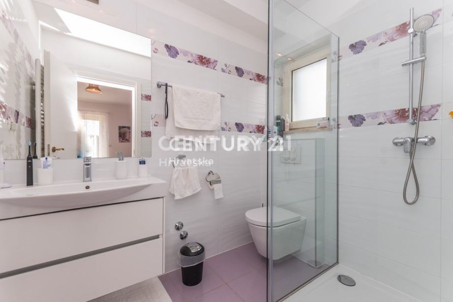 Na katu se nalaze još dvije prostrane spavaće sobe, svaka s vlastitom kupaonicom i izlazom na terasu. Ovdje možete uživati u privatnosti i prekrasnom pogledu iz svake sobe. Kuća je opremljena centralnim grijanjem koje se oslanja na dizalicu topline, što osigurava ugodnu temperaturu tijekom cijele godine bez visokih troškova energije. Također, prisutno je i centralno hlađenje za ugodne ljetne dane.