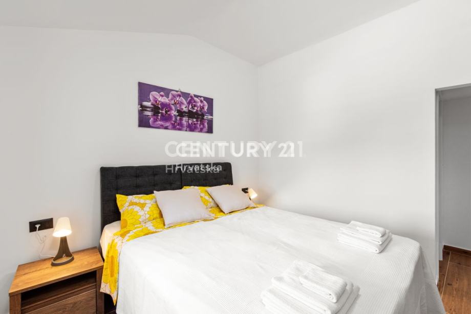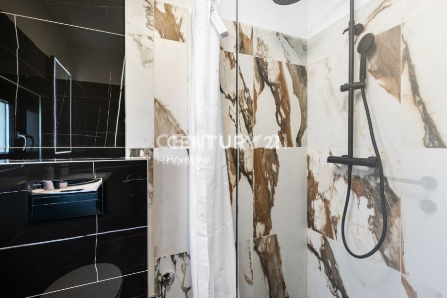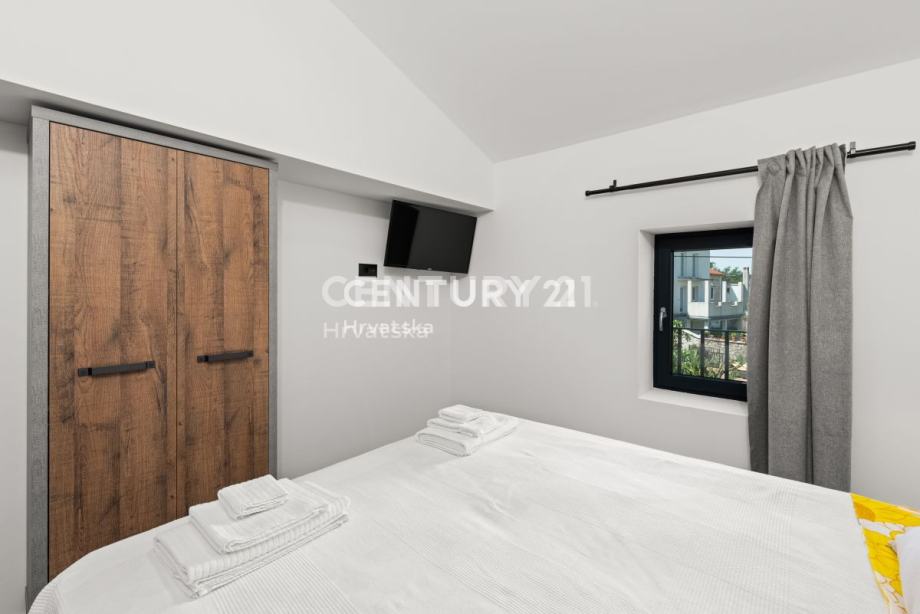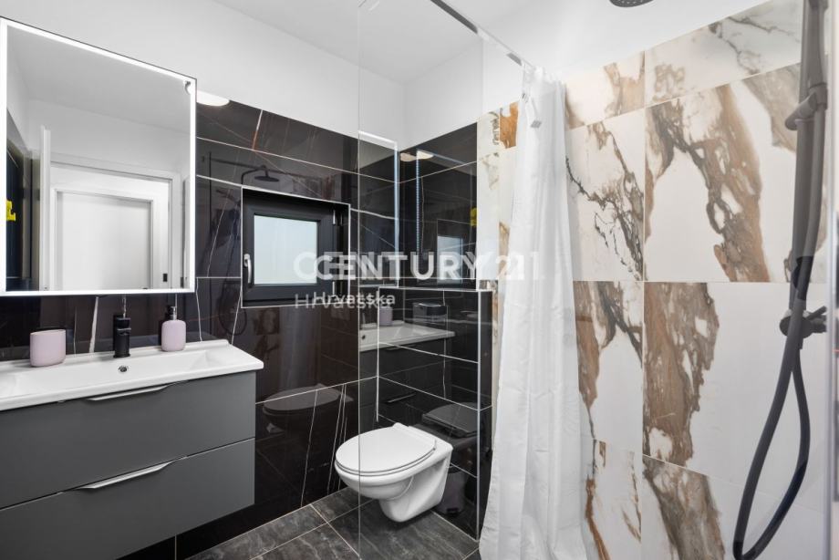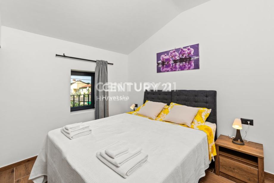 Kuća se sastoji od prizemlja i kata. U prizemlju ćete pronaći prostrani dnevni boravak koji će biti srce doma, kuhinju, prostrani hodnik, spavaću sobu, moderno uređenu kupaonicu te tehničku sobu koja se može koristiti kao i ostava. Stepenicama ćete se popeti na kat gdje se nalaze dvije prostrane spavaće sobe, svaka sa svojom vlastitom kupaonicom.