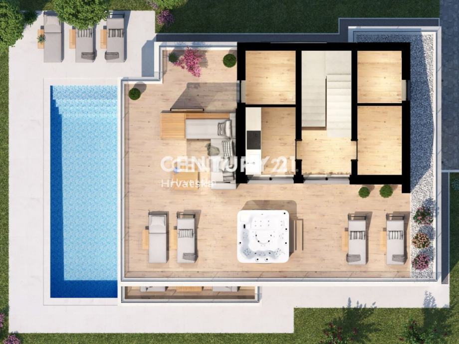 Sastoji se od prizemlja, kata i wellnesa na krovu zgrade s kojeg će biti pogled prema moru.