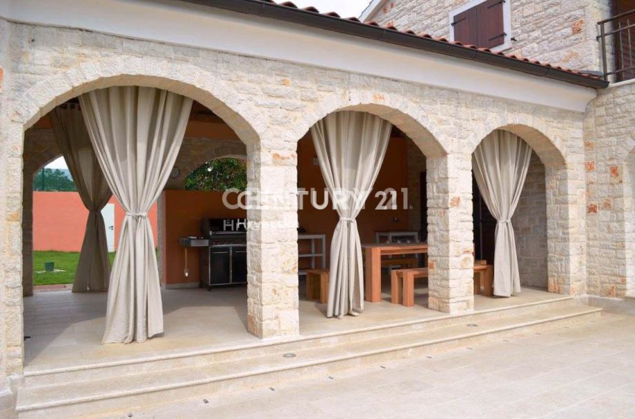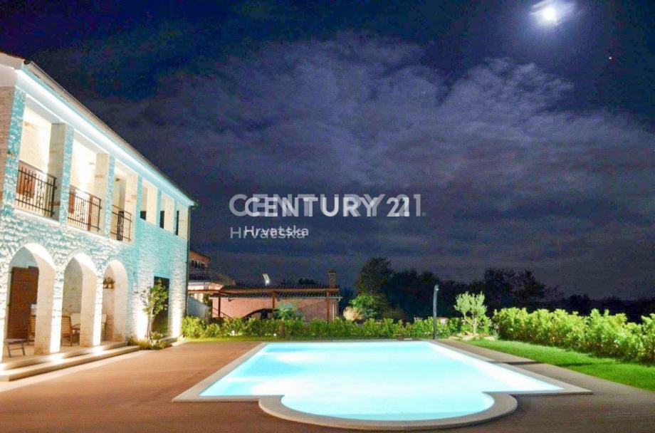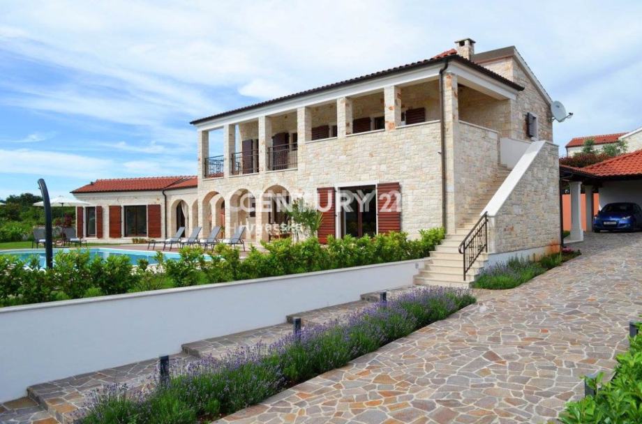 Ova velika kuća za odmor nalazi se u mirnom naselju udaljenom svega 5km od istarskog gradića Sv. Lovreča, na zemljištu veličine 1364m2.