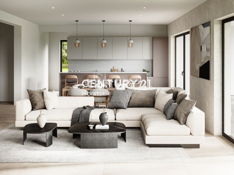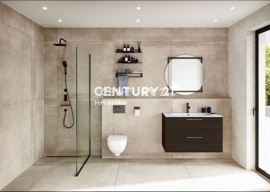 U prizemlju je prostran dnevni boravak,kuhinja i blagovaona od čak 55 m2,wellness-kutak za uživanje,tehnička soba,praonica i wc za goste.