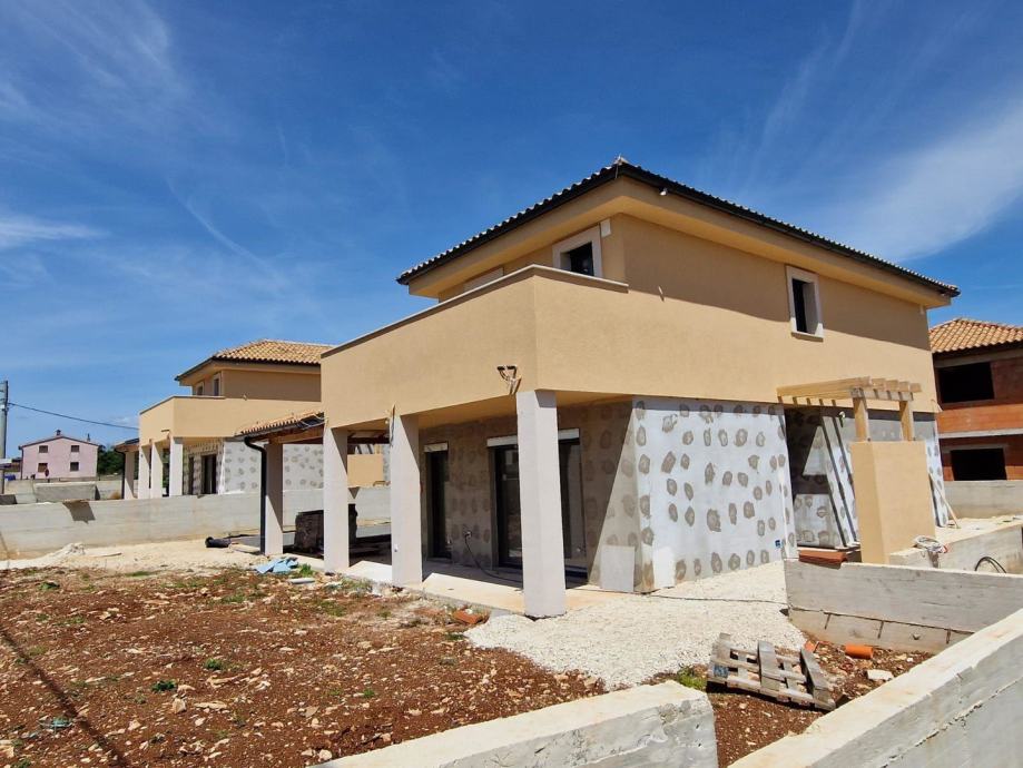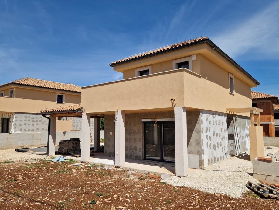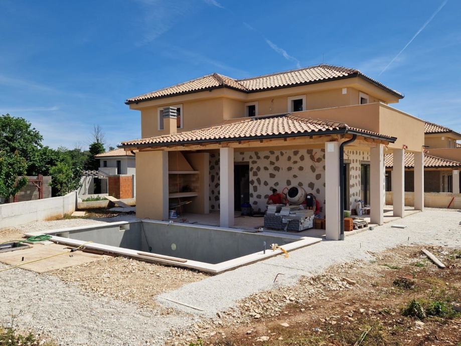 Prodaje se villa s bazenom u završnoj fazi opremanja, u Cukrićima (Svetvinčenat), u naselju novoizgrađenih villa, što čini okruženje vrlo ugodnim i sigurnim. Stambeni prostor je raspoređen u dvije etaže, sa unutarnjim stubištem iz boravka (7,58m2). U donjoj etaži se nalazi trijem (1.13m2 x 0,75)kuhinja sa blagovaonicom i dnevnim boravkom (31,67m2), spavaća soba1 (12,5m2), kupaonica1 (5,4m2), toalet (3m2),natkrivena terasa (40,68m2 x 0,5), što je ukupno prizemlje 94,36m2. Na katu se nalazi spavaća soba2 (13,5m2), kupaonica2 (5,2m2), spavaća soba3 (10,95m2), kupaonica3 (5,33m2), garderoba (2,52m2), te terasa 15,8m2 x 0,25), što je ukupno kat 61,03m2. U dvorištu ville je parking.