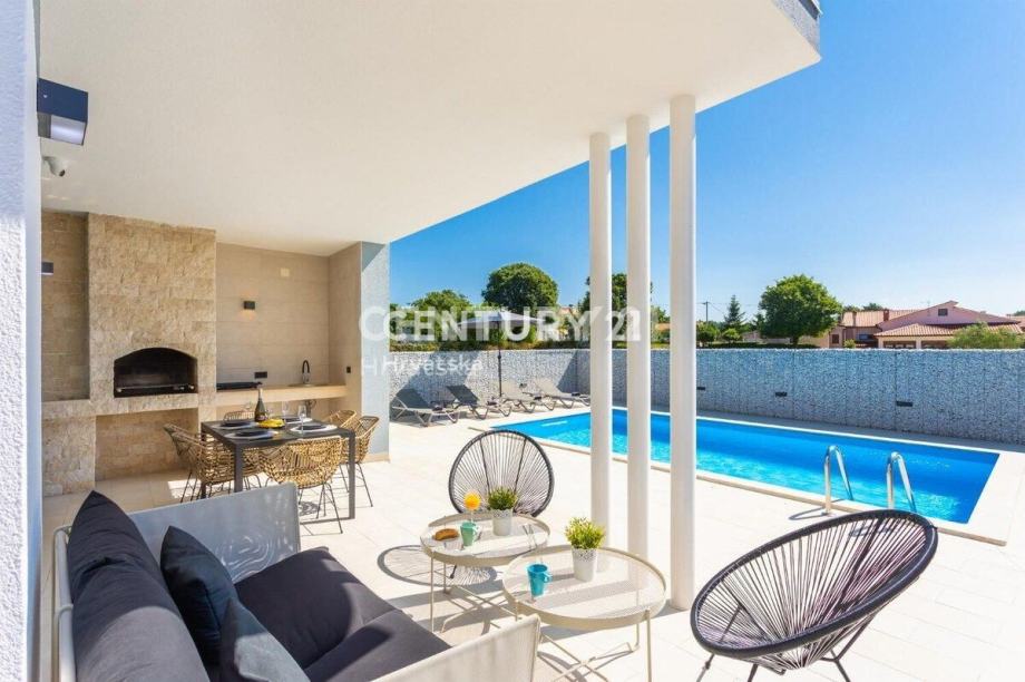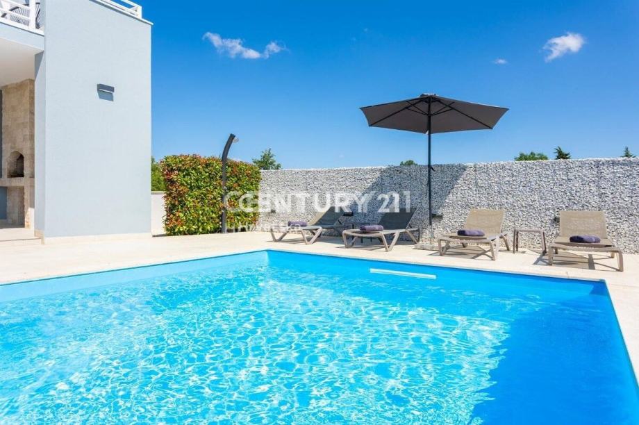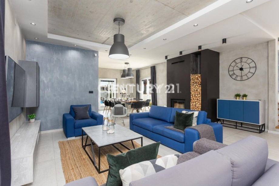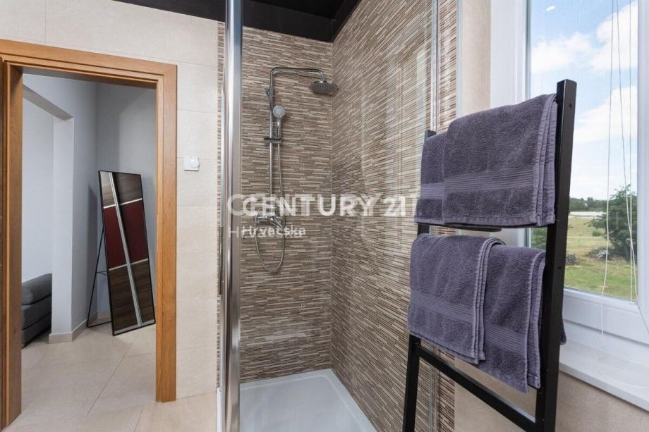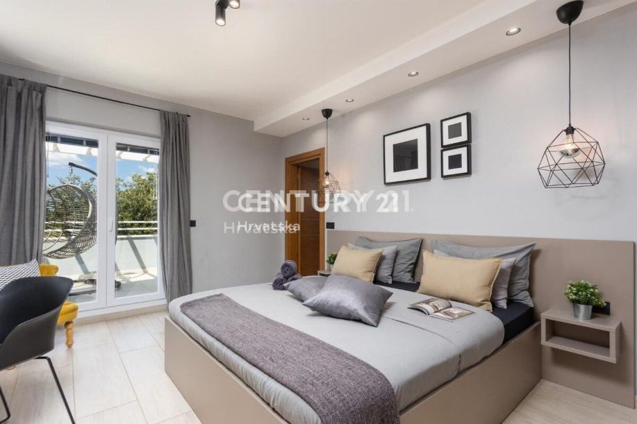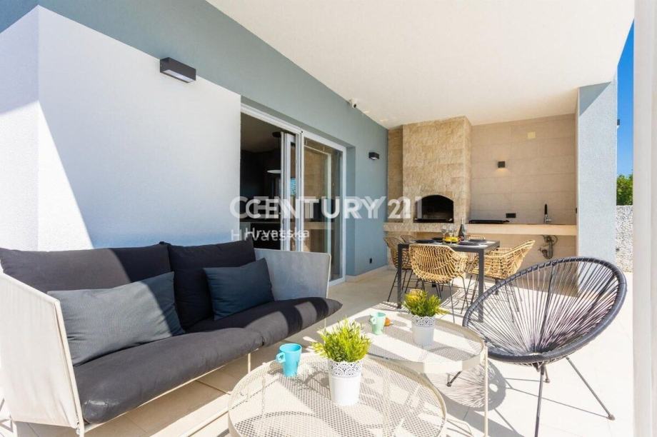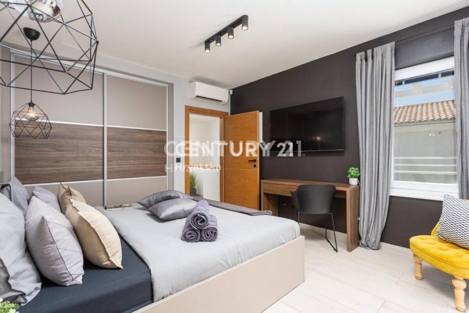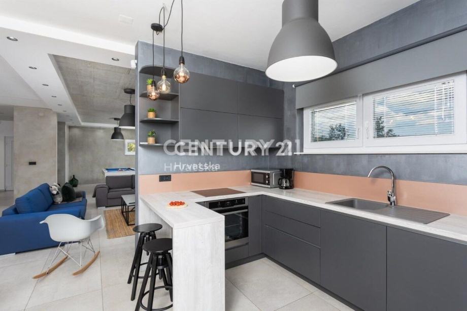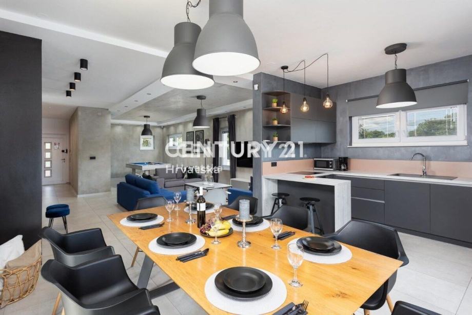 Kuća je katnica, s dnevnim boravkom i velikom kuhinjom s blagovaonicom te terasom u prizemlju. Na katu se nalaze 3 spavaće sobe, svaka sa svojom kupaonicom, te veliki balkon.