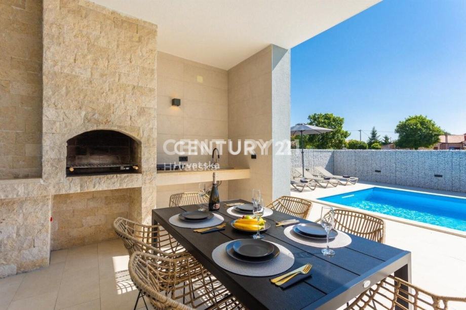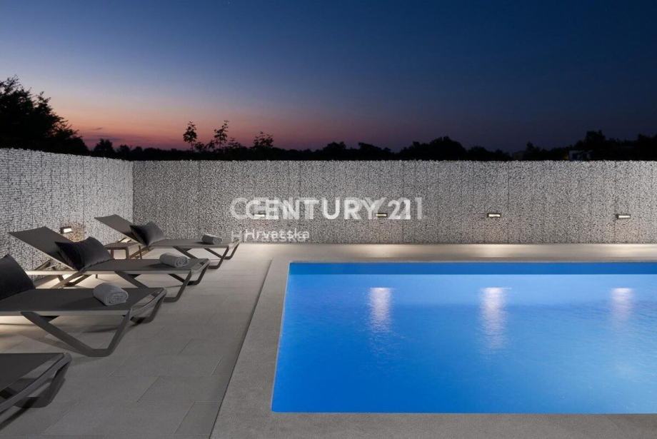 Zemljište je površine 449m2, a u uređenom okolišu nalazi se bazen površine 34m2, kao i ljetna kuhinja, te parkirna mjesta za 2 automobila.