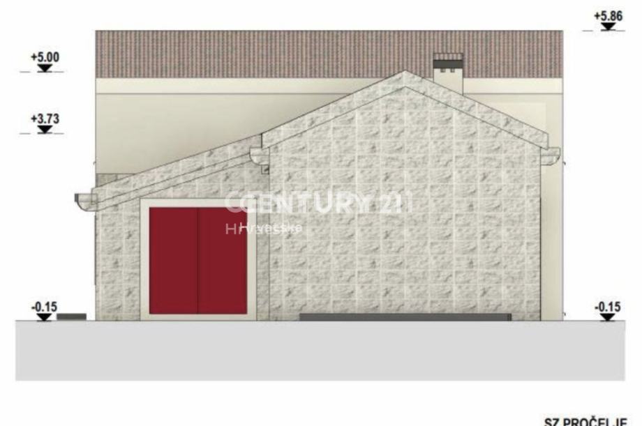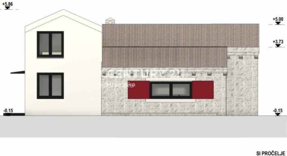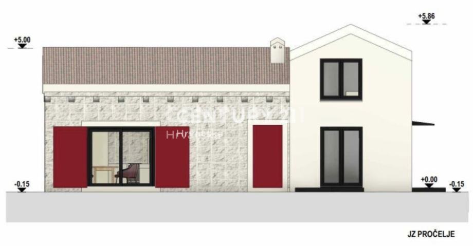 Kuća je trenutno u fazi izgradnje, a predviđena je gradnja samostojeće stambene građevine, prizemlje i kat, pomoćnih građevina - vanjski bazen s bazenskom tehnikom, sabirna jama, 2 parkirna mjesta.
