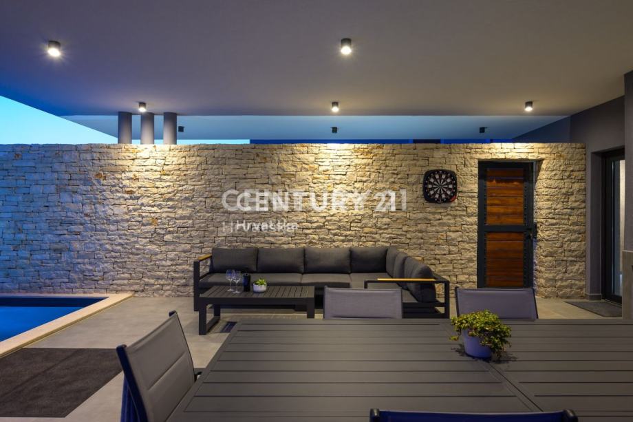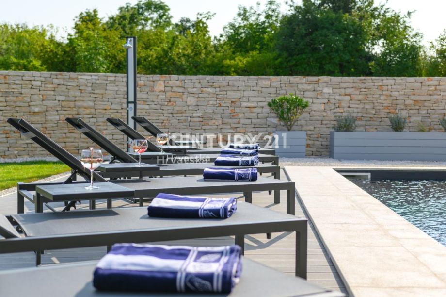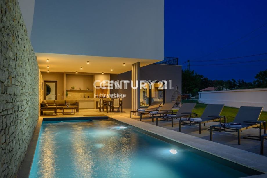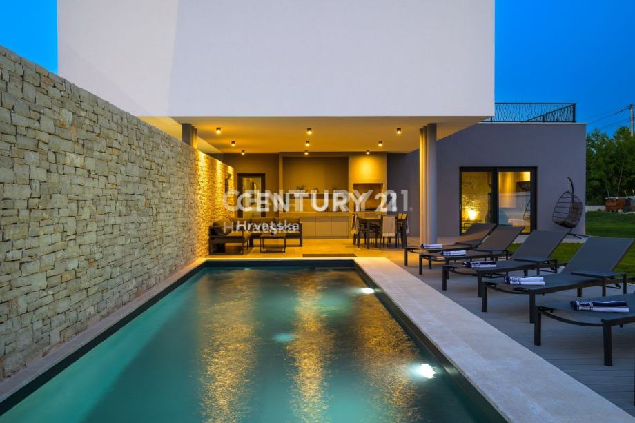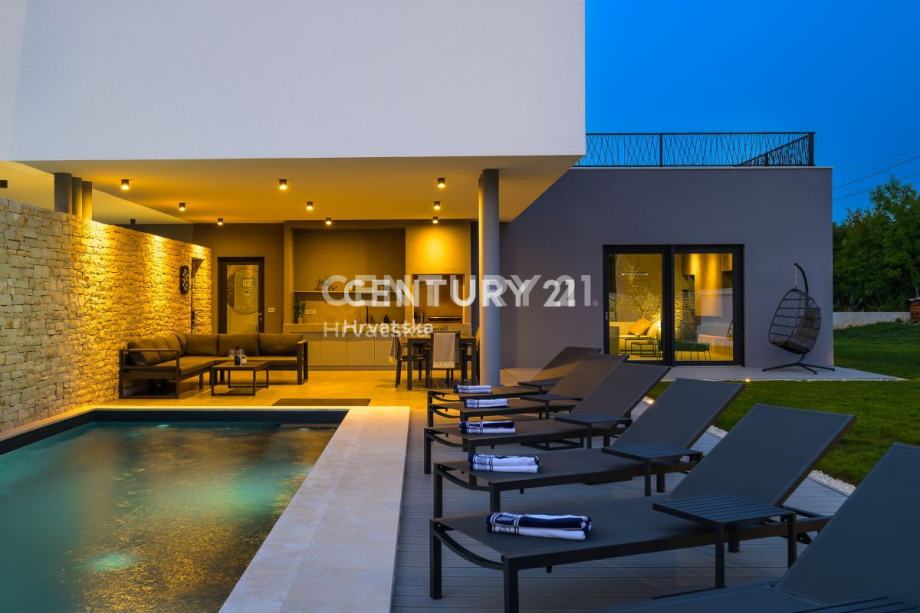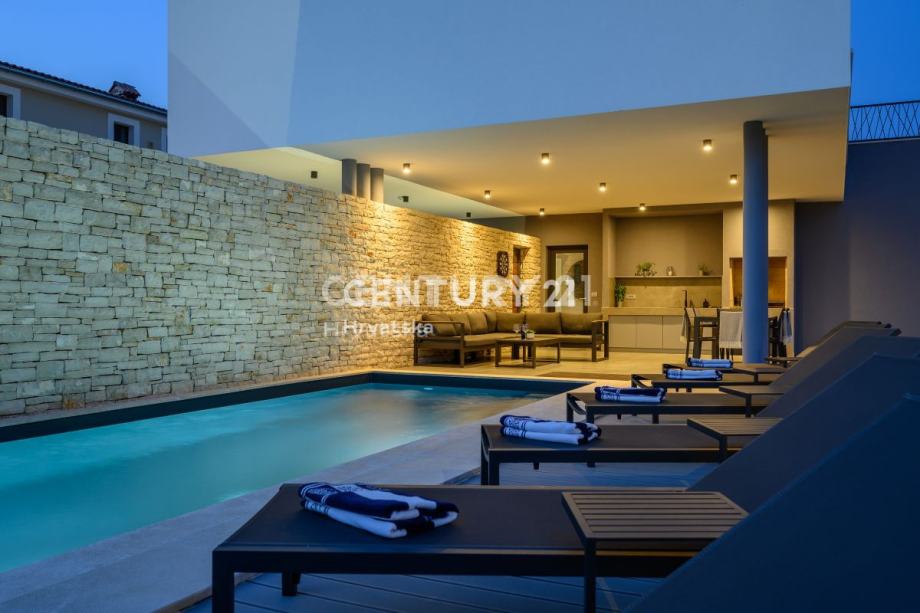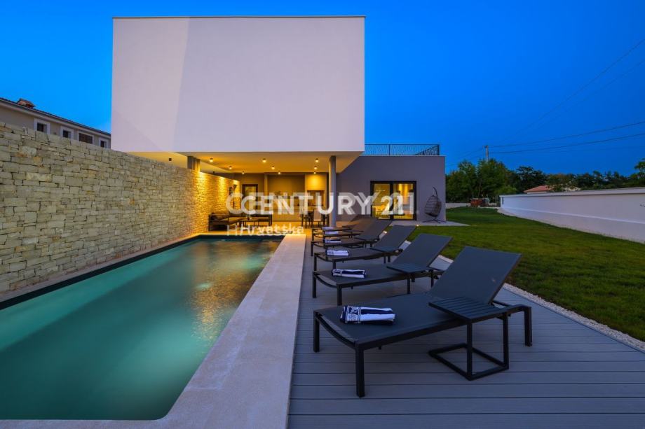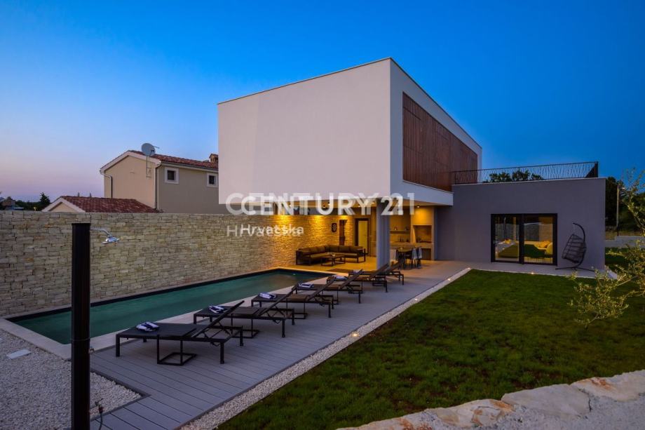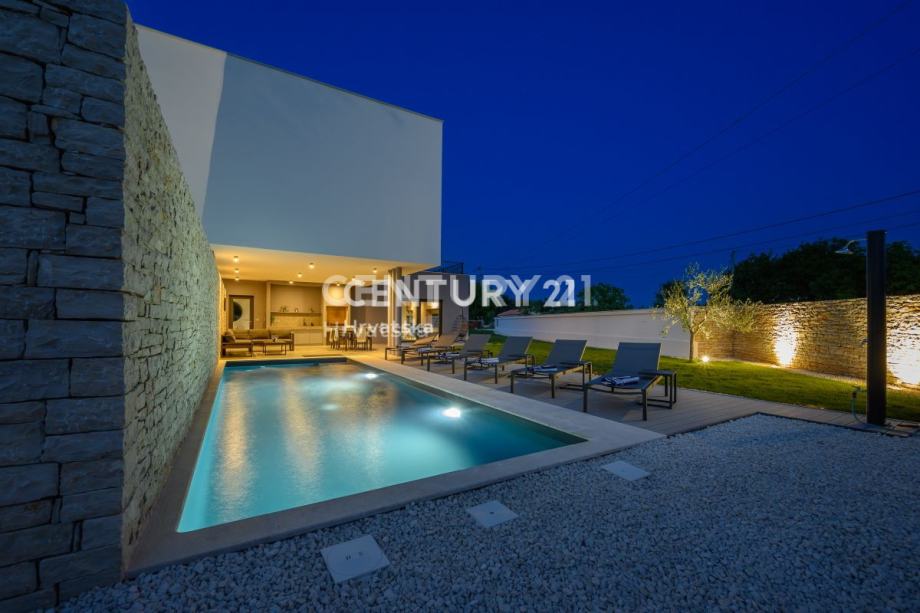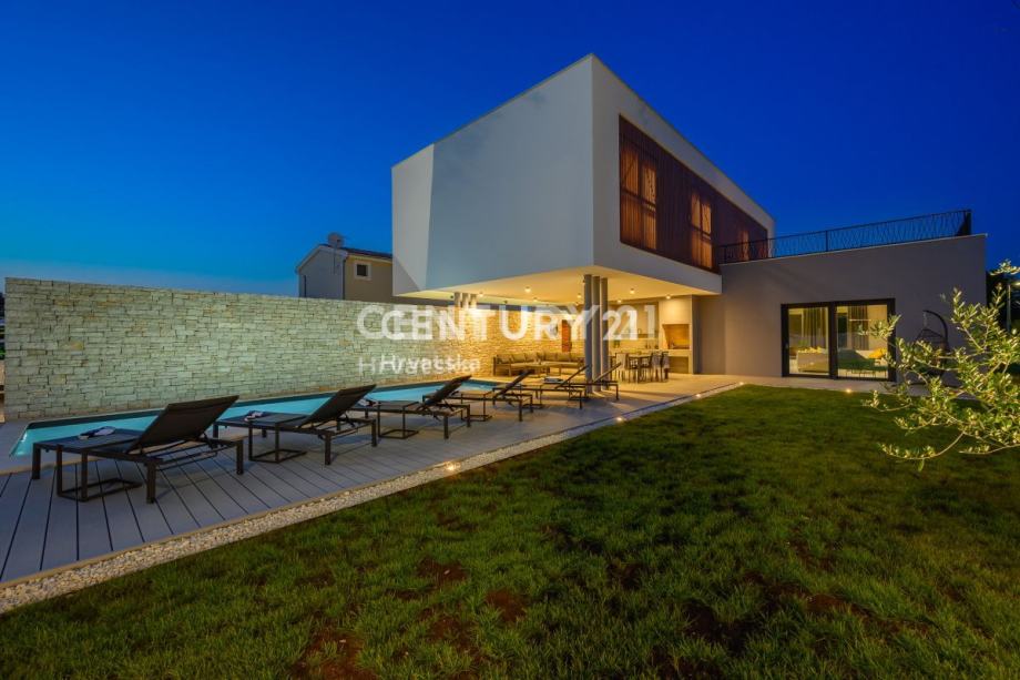 Ova prekrasna moderna vila s bazenom smještena je svega 2 km od Svetvinčenta, u mirnom naselju na rubu građevinske zone. Izgrađena korištenjem vrhunskih materijala, vila se prostire na 252 m2 interijera raspoređenog na dvije etaže.