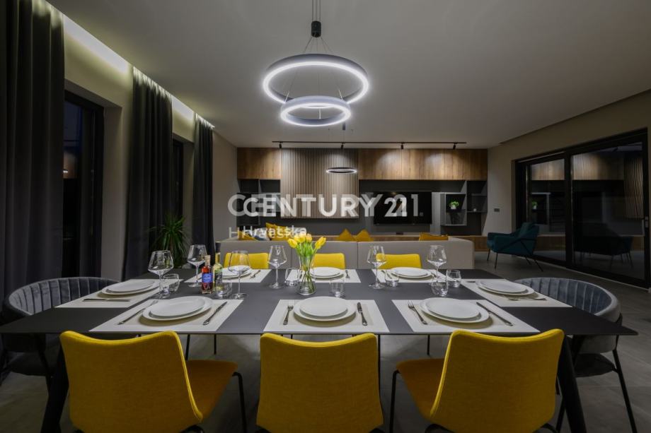 Svaka prostorija klimatizirana je inverter klima uređajima, koji omogućuju brzo grijanje i hlađenje, a za dodatnu udobnost ugrađeno je podno grijanje. U pažljivo uređenoj okućnici nalazi se veliki bazen sa sunčalištem, travnjak, prostrani parking za više automobila te ljetna kuhinja, idealna za druženja i opuštanje.