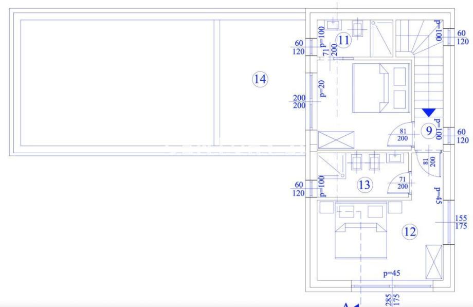 Na katu nalaze se još dvije spavaće sobe svaka sa svojom kupaonicom i izlazom na krovnu zelenu terasu.