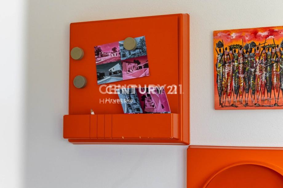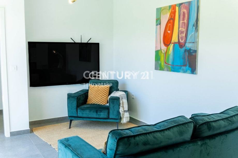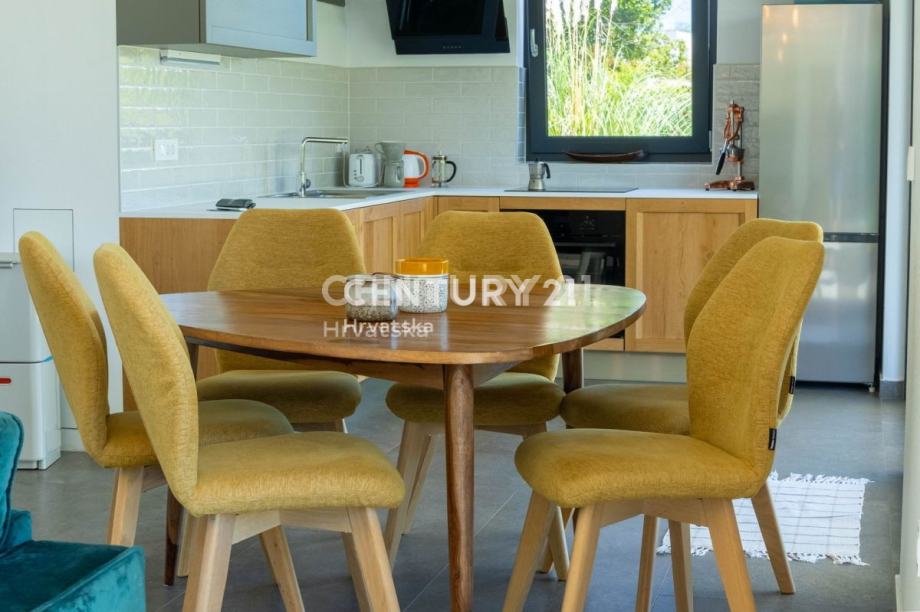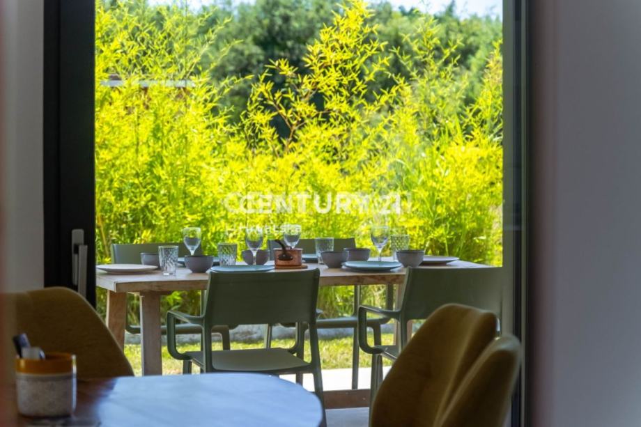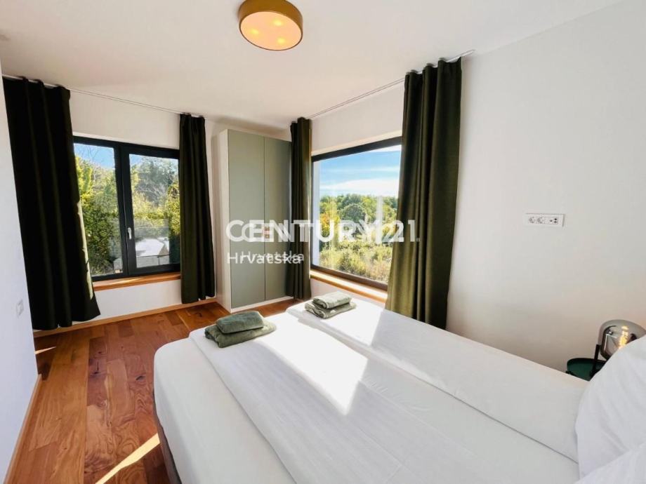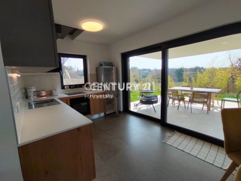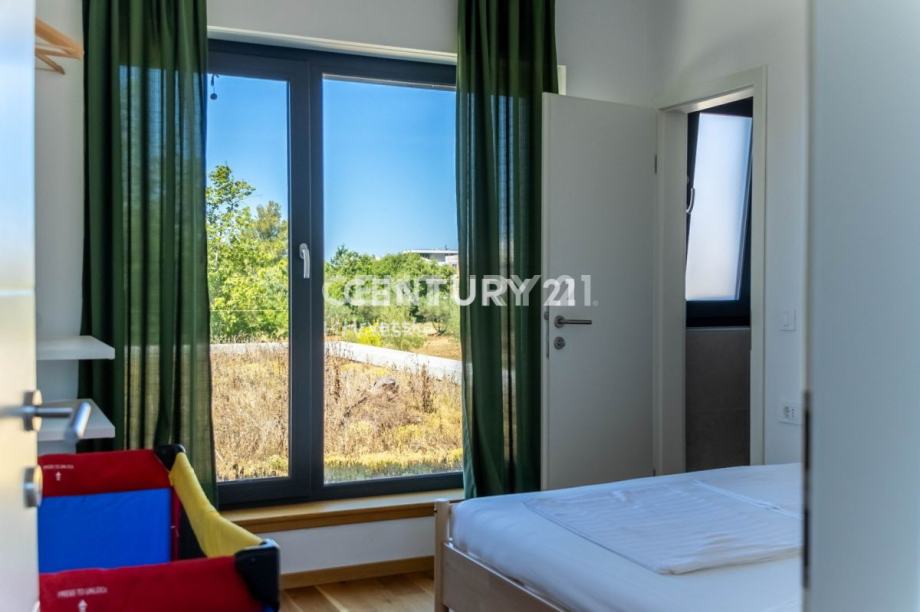 Ono što krasi prostore ove moderne vile su velike staklene stijene u prizemlju te u sobama na katu sa pogledom na zelenilo koje okružuje kuću te zalazak sunca.Vila ima prvu fazu za podno grijanje , prvu fazu za solarno grijanje tople vode , aluminijsku stolariju, troslojno staklo, klima uređaje u svakoj prostoriji te pod je ukrašen hrastovim parketom.