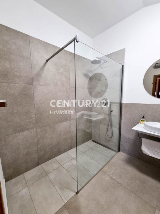 Kuća se sastoji od prostranog open space dnevnog boravka skupa sa kuhinjom i blagovaonom, dvije kupaonice te 3 sobe.