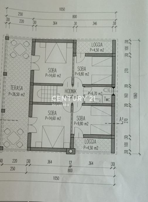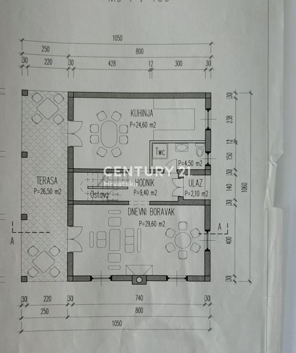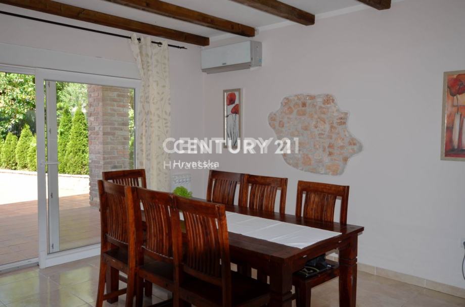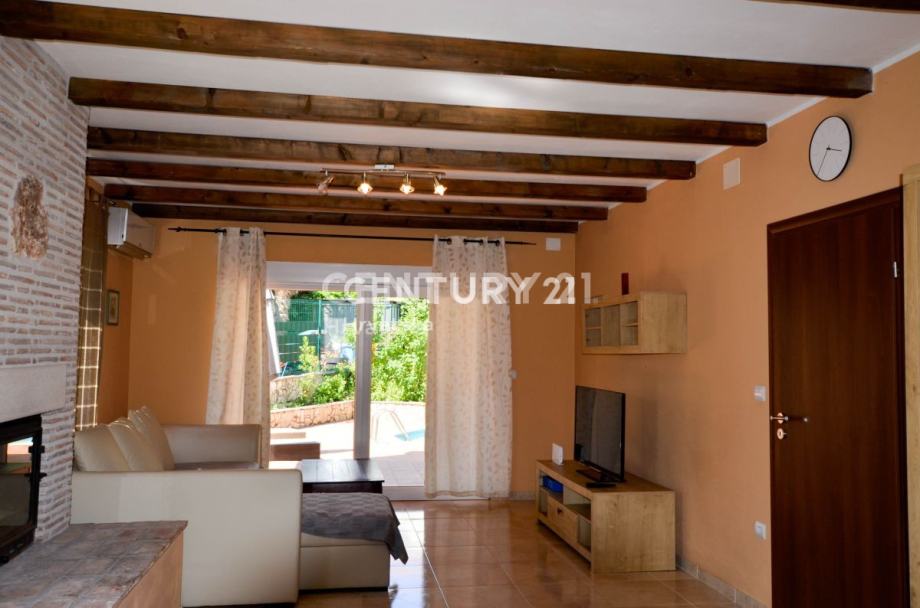 Prizemlje: hodnik, kupaonica, veliki dnevni boravak, prostrana kuhinja i blagovaonica s izlazim na veliku terasu i dvorište s bazenom od 24 m2.