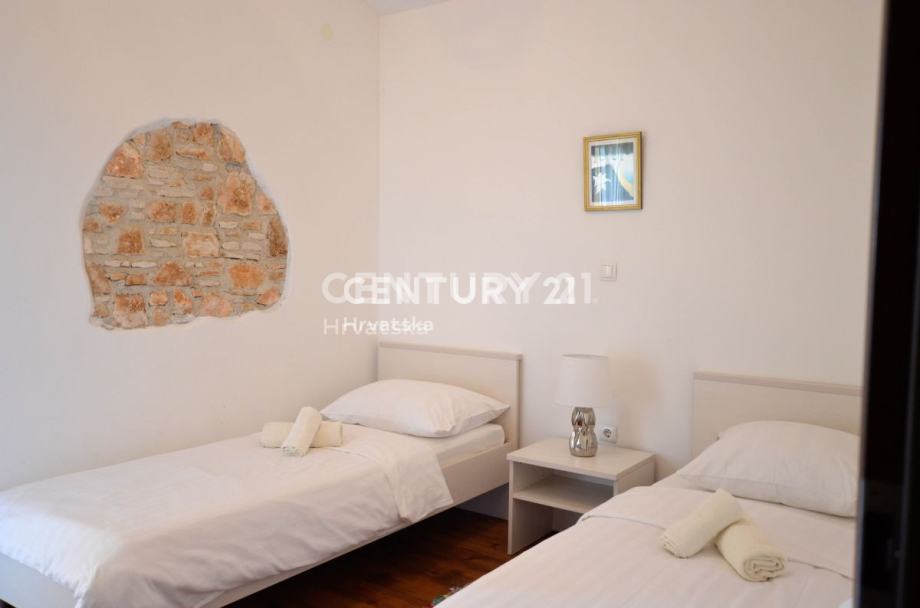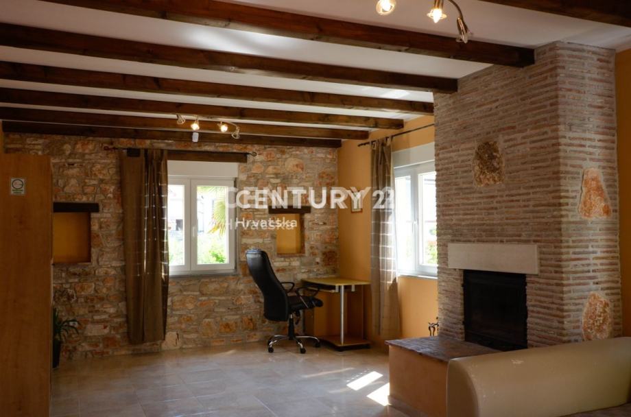 Na odličnoj lokaciji, u slijepoj ulici, samo 500 m od plaže, nalazi se ova lijepa, samostojeća kuća okružena zelenilom.