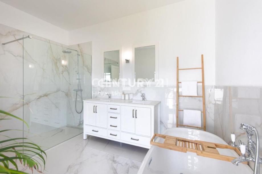 Stambena površina sastoji se od 4 master spavaće sobem od kojih svaka ima svoju kupaonicu s wc-om, te dvije od njih imaju i walk in ormar, velikog i prostranog dnevnog boravka koji je povezan s kuhinjom i blagovaonicom, prizemne terase i terase na katu, prostorije za fitness i kotlovnice.