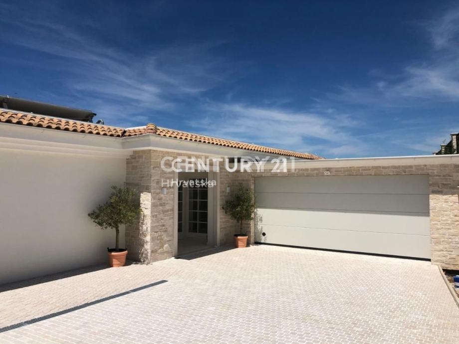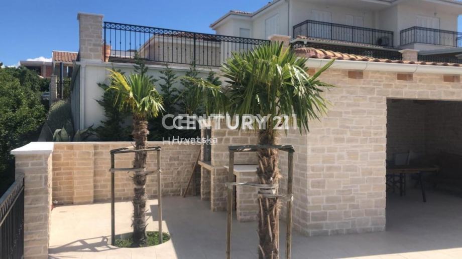 Na okućnici se nalazi prostrana terasa sa sunčalištem i automatizirano grijanim bazenom, zidani roštilj, garaža za dva automobila površine 42 m2, te još jedna pomoćna zgrada koju je moguće koristiti po potrebi površine tridesetak kvadrata.
