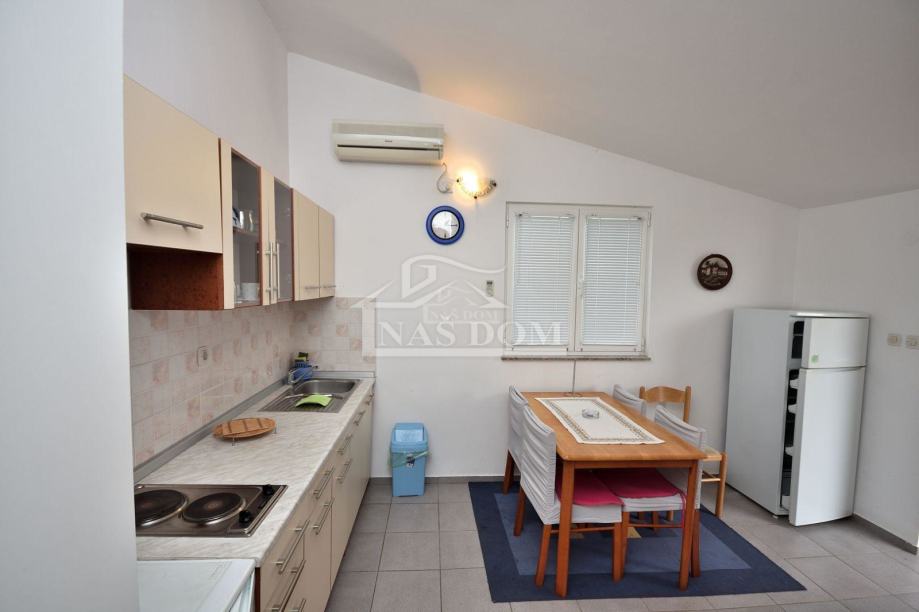 Pirovac- prodaje se kuća s ukupno 4 apartmana . Svaki apartman ima zaseban ulaz. Kuća katnica površine 160m2 sagrađena je na zemljištu veličine 250m2 i sastoji se od dvije etaže : prizemlje +visoko potkrovlje . Kuća je sagrađena 1984 godine , zadnji put je renovirana 2013 kad je napravljena nova fasada. U prizemlju se nalaze dva apartmana . apartman s dvije spavaće sobe i studio apartman, a na katu se nalaze dva jednosobnna apartmana. Okućnica je popločana i uređena . Svi apartmani su namješteni i klimatizrani. Kuća se nalazi na mirnoj lokaciji, 900 m od plaže i centra Pirovca.