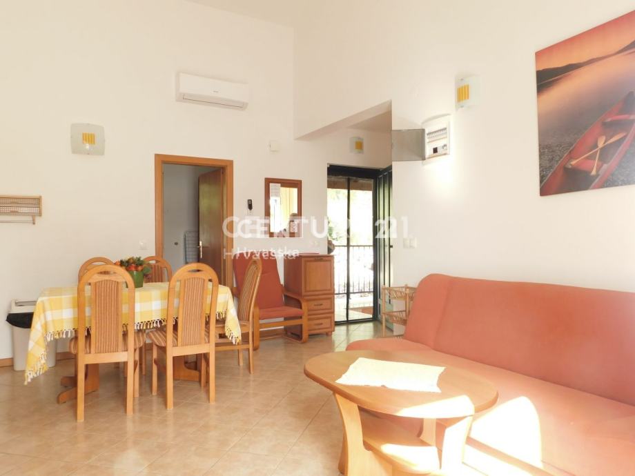 Unutrašnjost kuće je elegantna, pružajući vam udobnost tijekom vašeg boravka. Svaki apartman je opremljen svim potrebnim sadržajima kako bi vaš odmor bio potpuno bezbrižan. Prostrane sobe, moderno opremljene kuhinje i udobni dnevni boravci stvaraju atmosferu koja će vas očarati.