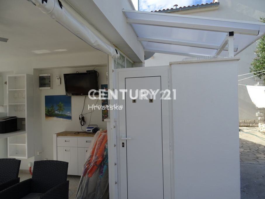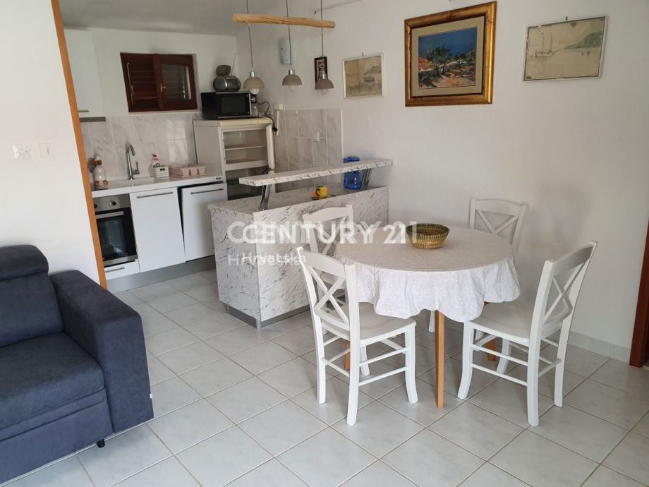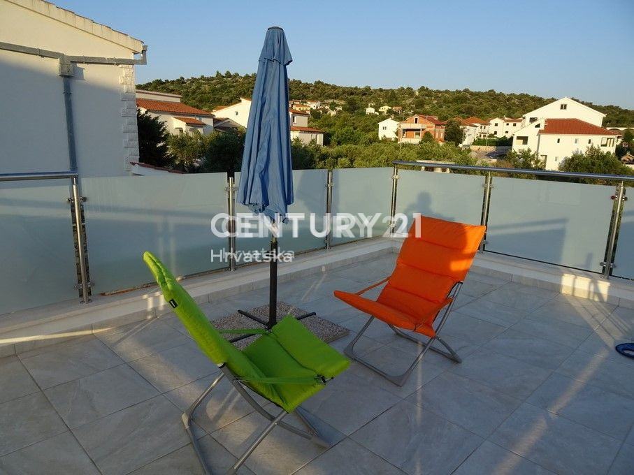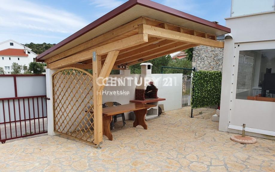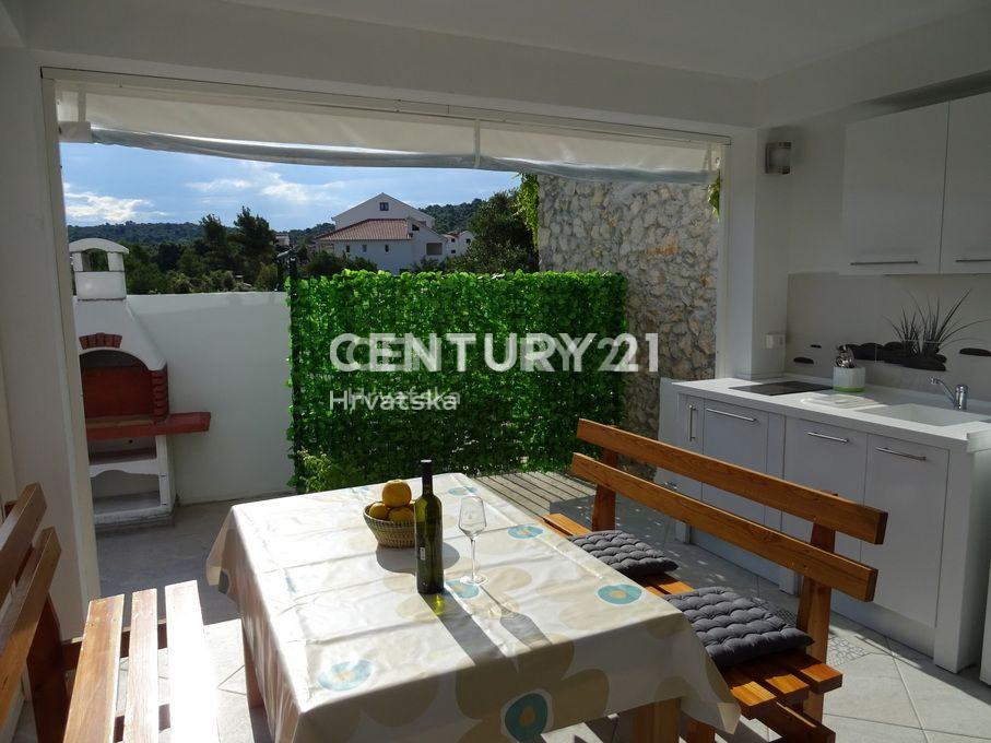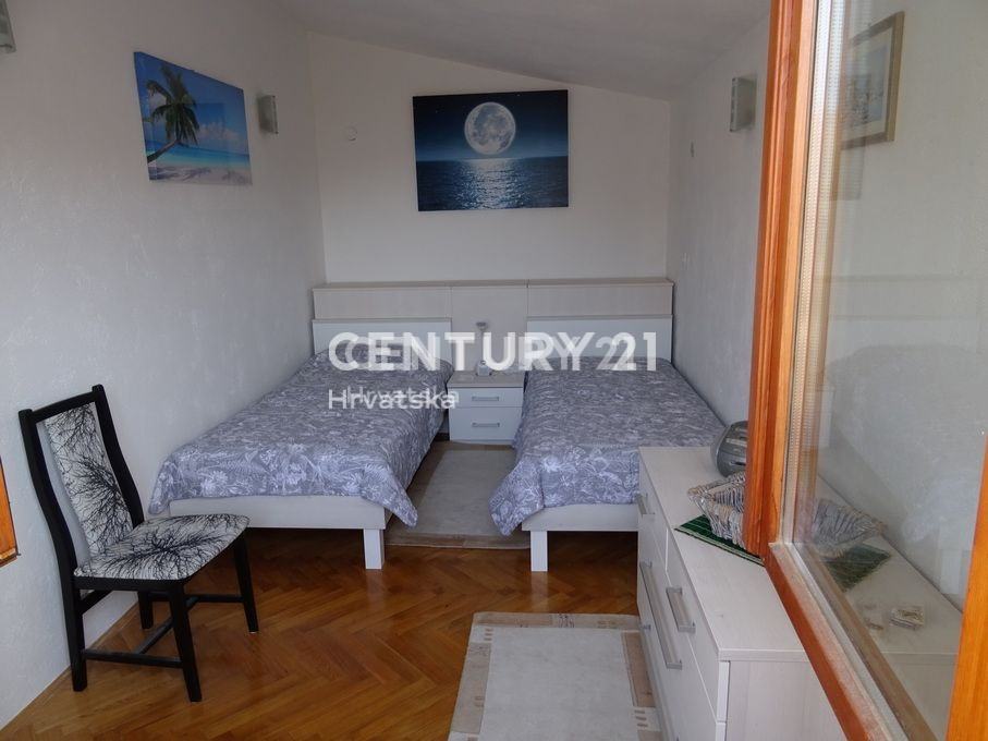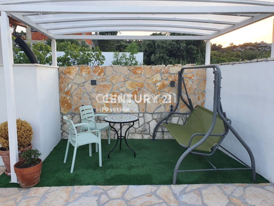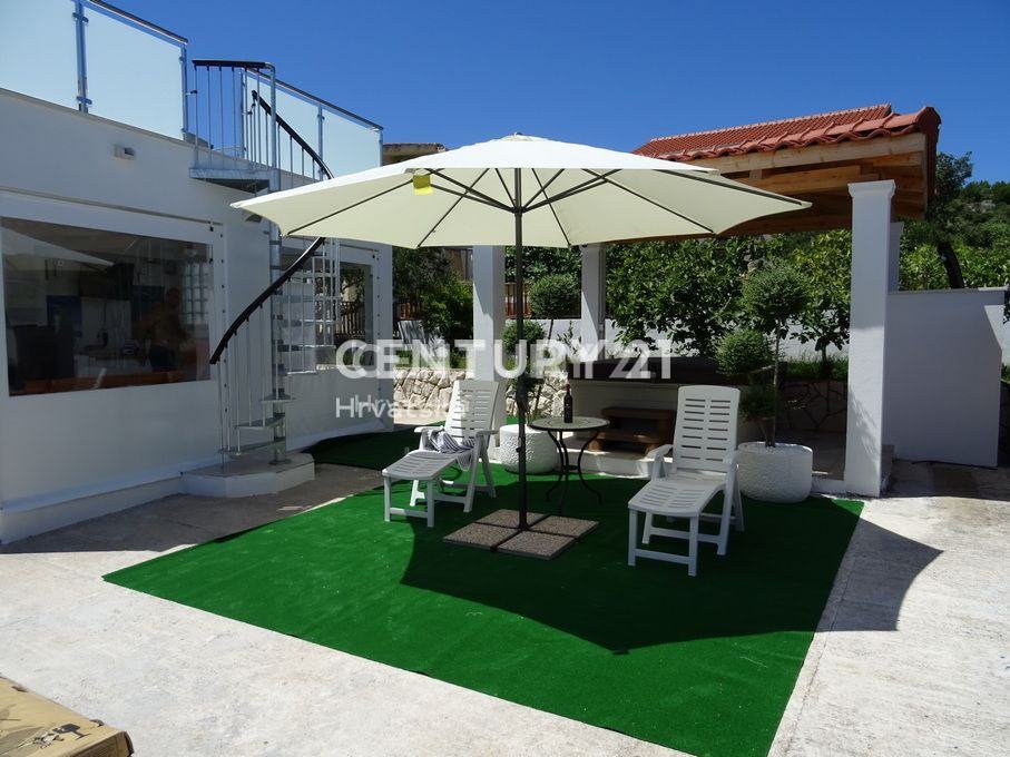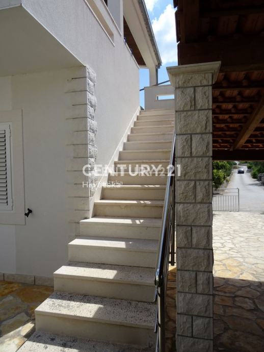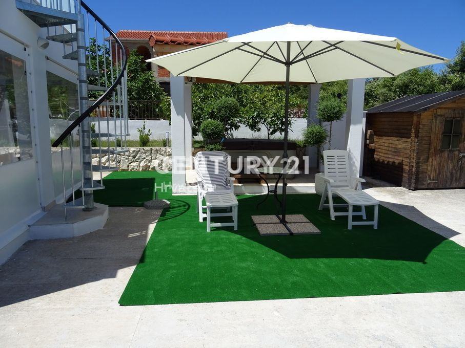 Objekat se sastoji od prizemlja u kojem se nalazi trosoban stan te prvoga kata na kojem se nalazi dvosoban stan s prostranom terasom. Prekrasan dvor pruza maksimalnu privatnost i intimu a, zasticen je visokom ogradom koja stiti od pogleda.Cijela parcela je zasađena mediteranskim biljem i zelenilom, te pruža intimu i mir koji su i tekako vazni.