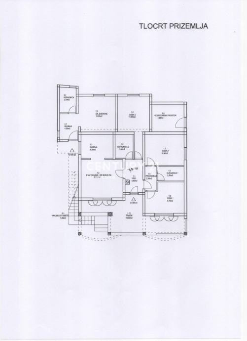 S 1 - stan od 65,30 m2: 3 spavaće sobe, DB, 2 kupaonice, kuhinje, hodnik plus terasa od 19,50 m2