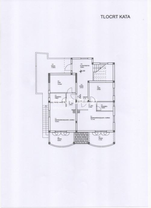 Gornje etaže povezane su vanjskim stepeništem, zajednički prostor na svakoj etaži je velika terasa, ulazni prostor, hodnik i spremište.