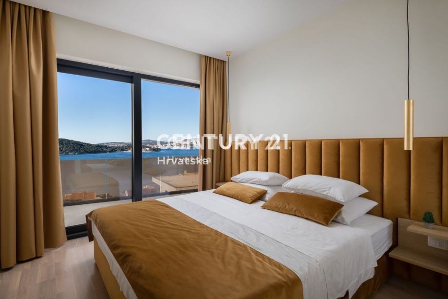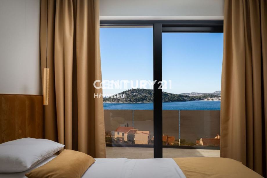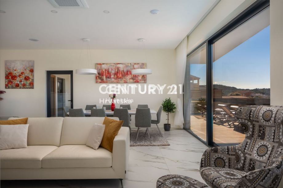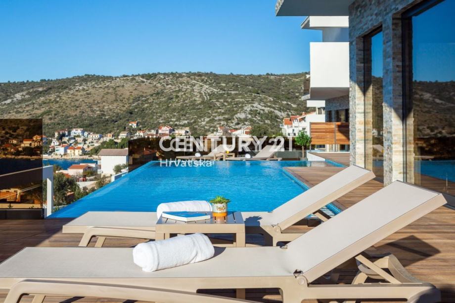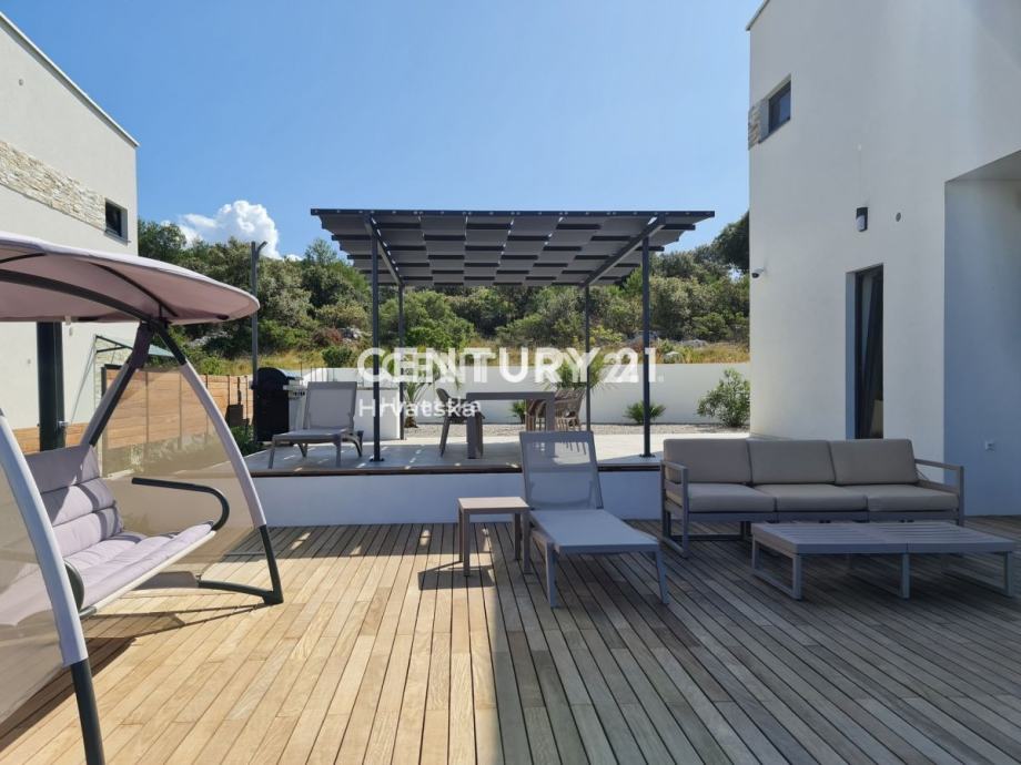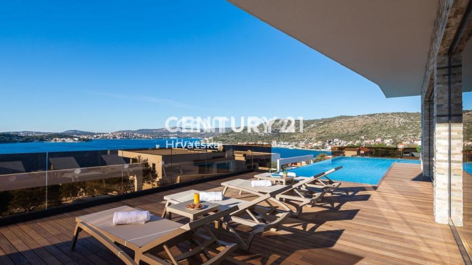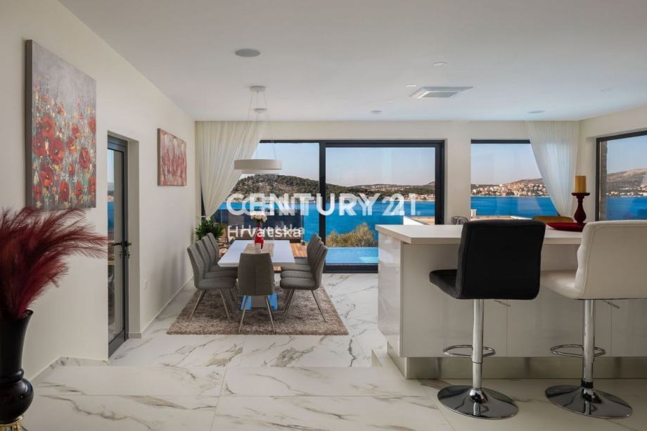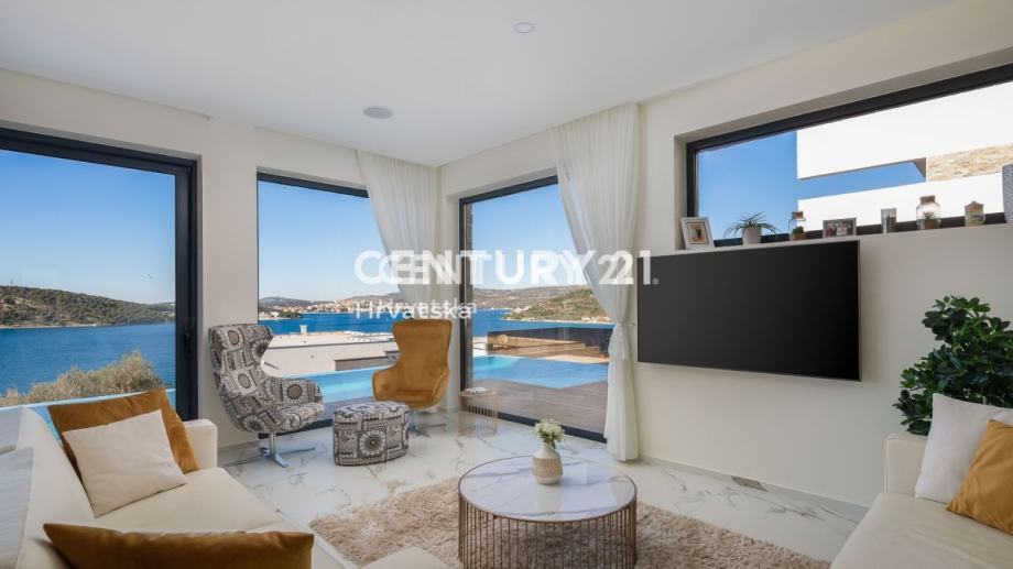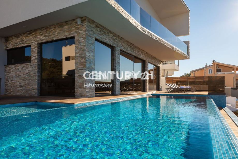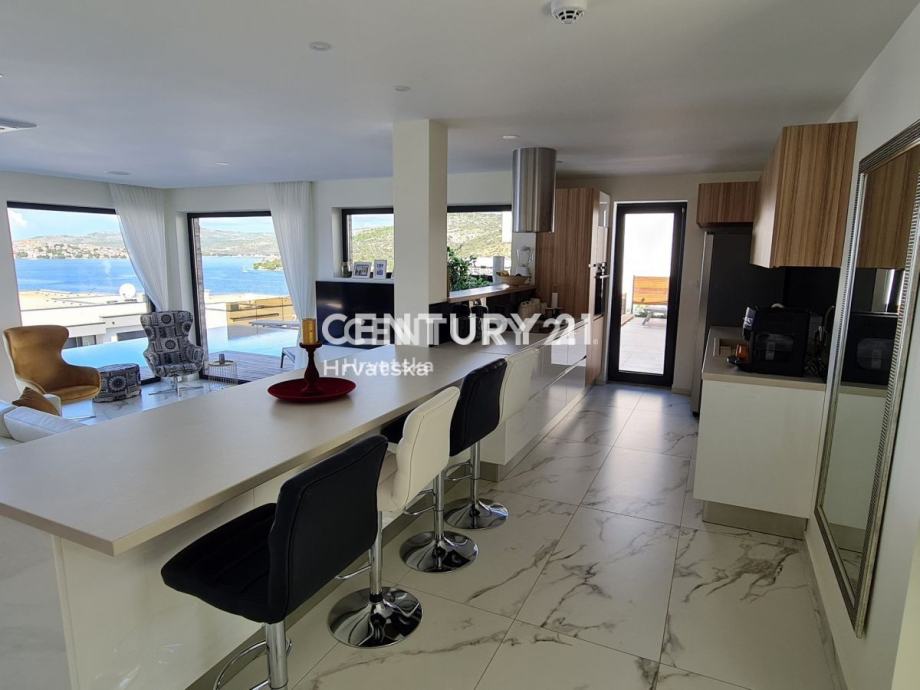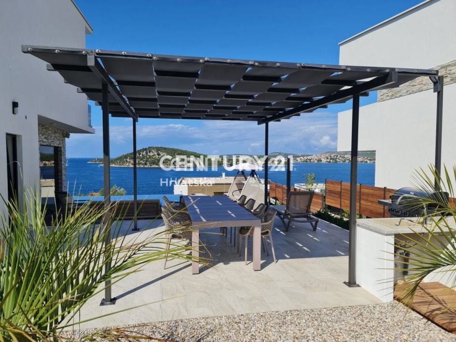 Ova prekrasna moderna villa s bazenom nalazi se svega 150m od mora u mirnom naselju Rogoznica kod Šibenika.