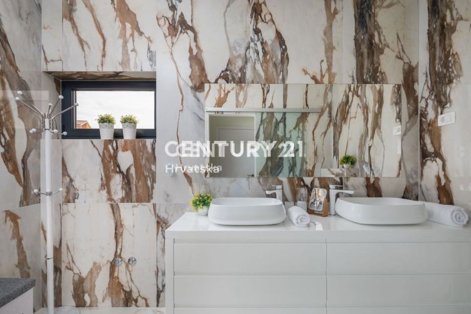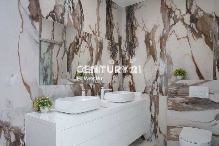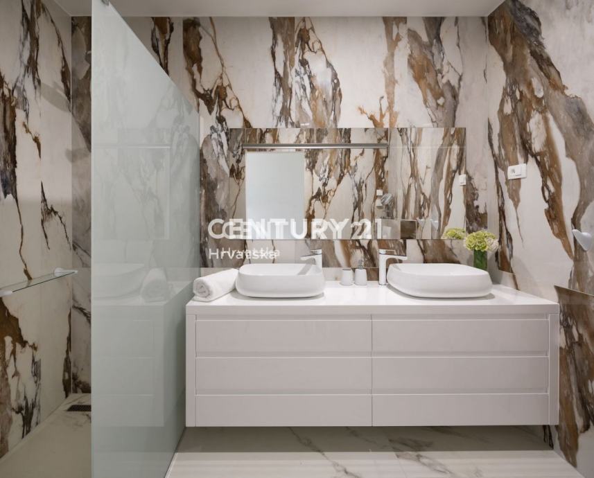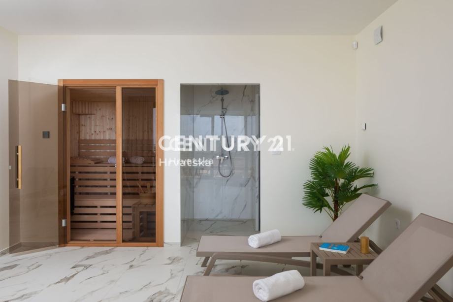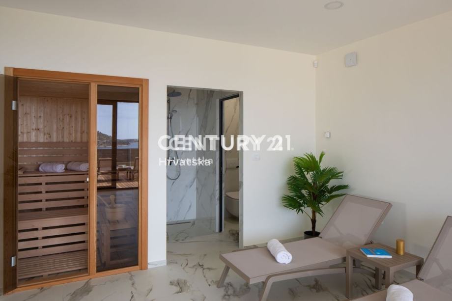 Sastoji se od dnevnog boravka, kuhinje, wellness prostorije sa saunom, gostinjskog wc-a u prizemlju, te 4 spavaće sobe, svaka sa svojom kupaonicom i izlazom na veliku terasu s pogledom na more na katu.