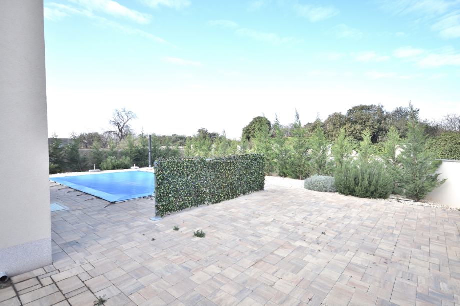 Okućnicu kuće čini vrt koji je kultiviran mediteranskim biljem , dvorište s dva parkirna mjesta i bazen površine 25m2.