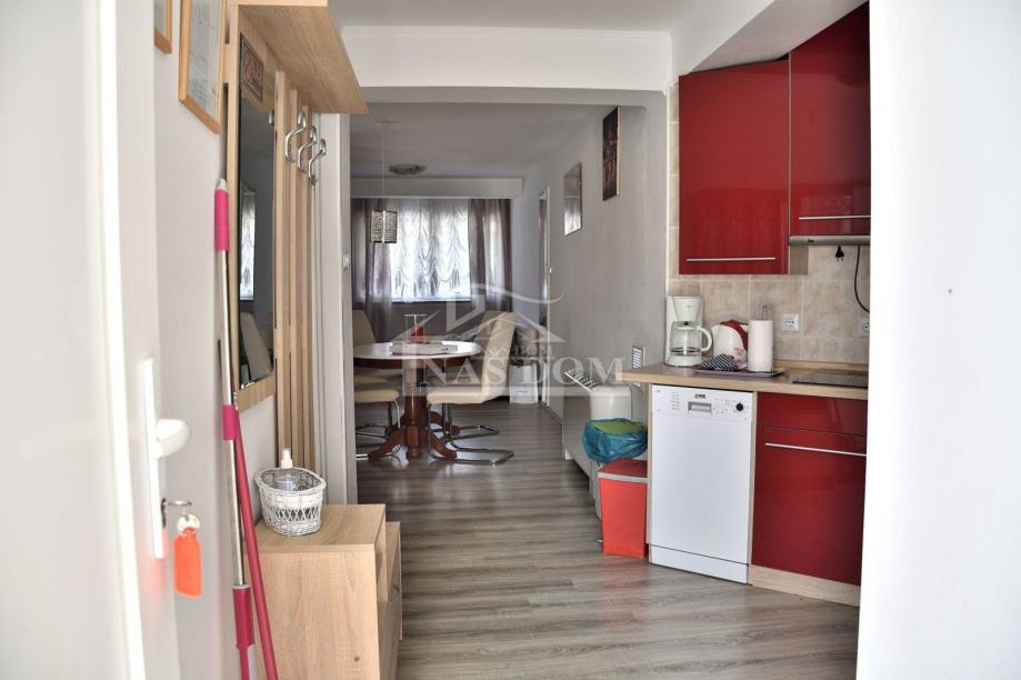 Kuća ima tri etaže : prizemlje+I.kat+II.kat. U prizemlju se nalazi stan s tri spavaće sobe koji vlasnici koriste u privatne svrhe te jednosoban apartman s terasom .